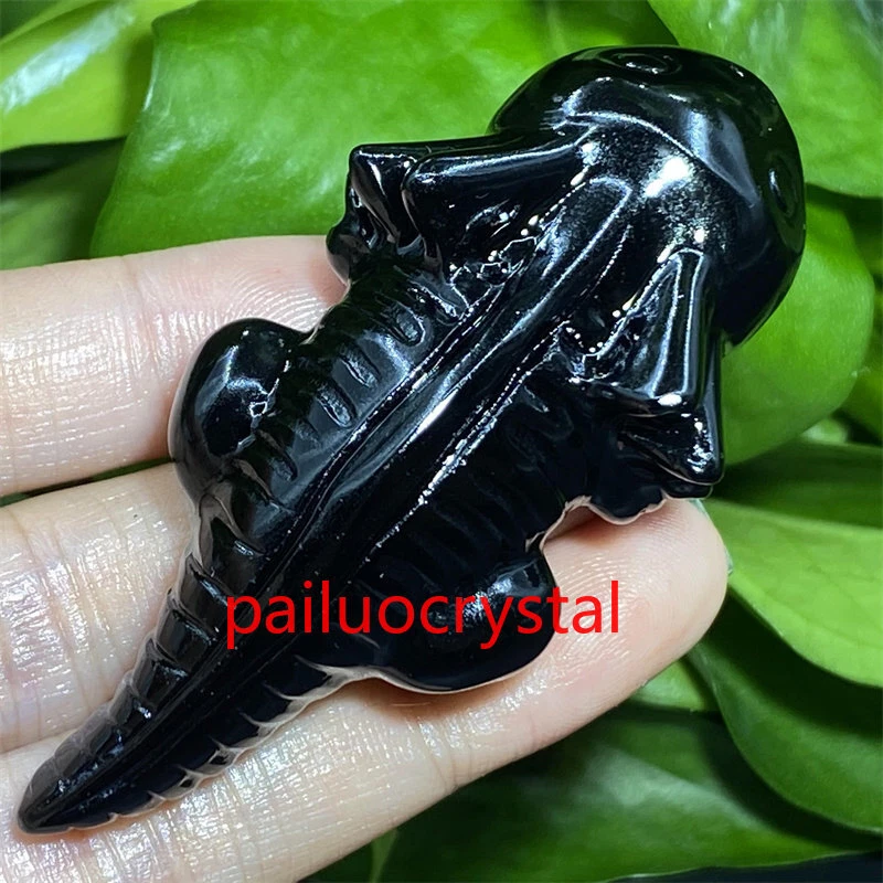 1pc Natural Obsidian Salamander Quartz Crystal Carved Skull Figurines Reiki 2.5"
