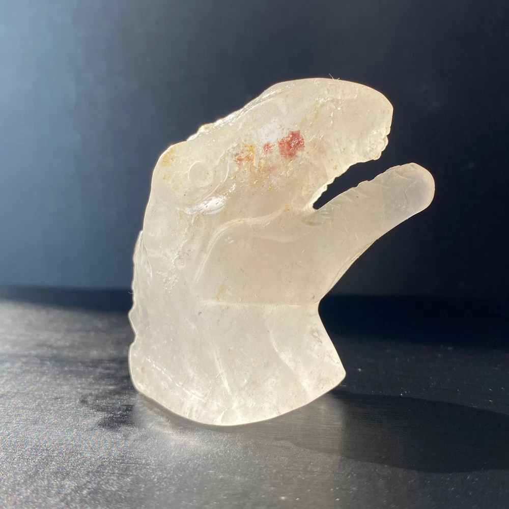 1pc Natural clear quar crystal quartz Hand Carved Crystal dinosaur skull healing