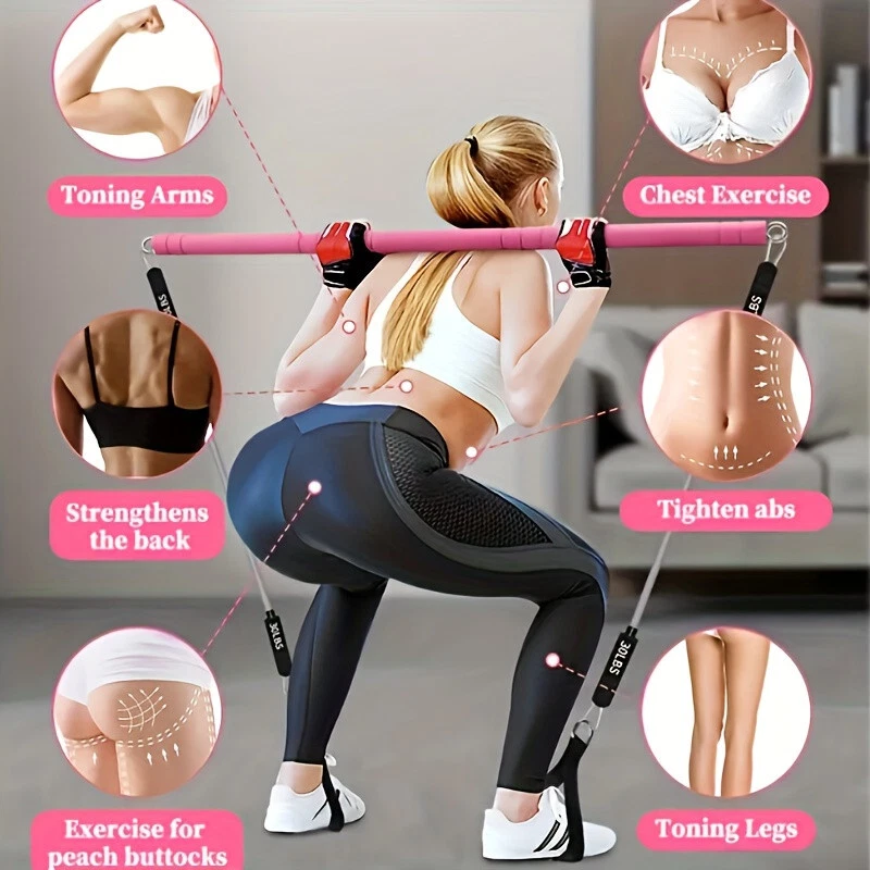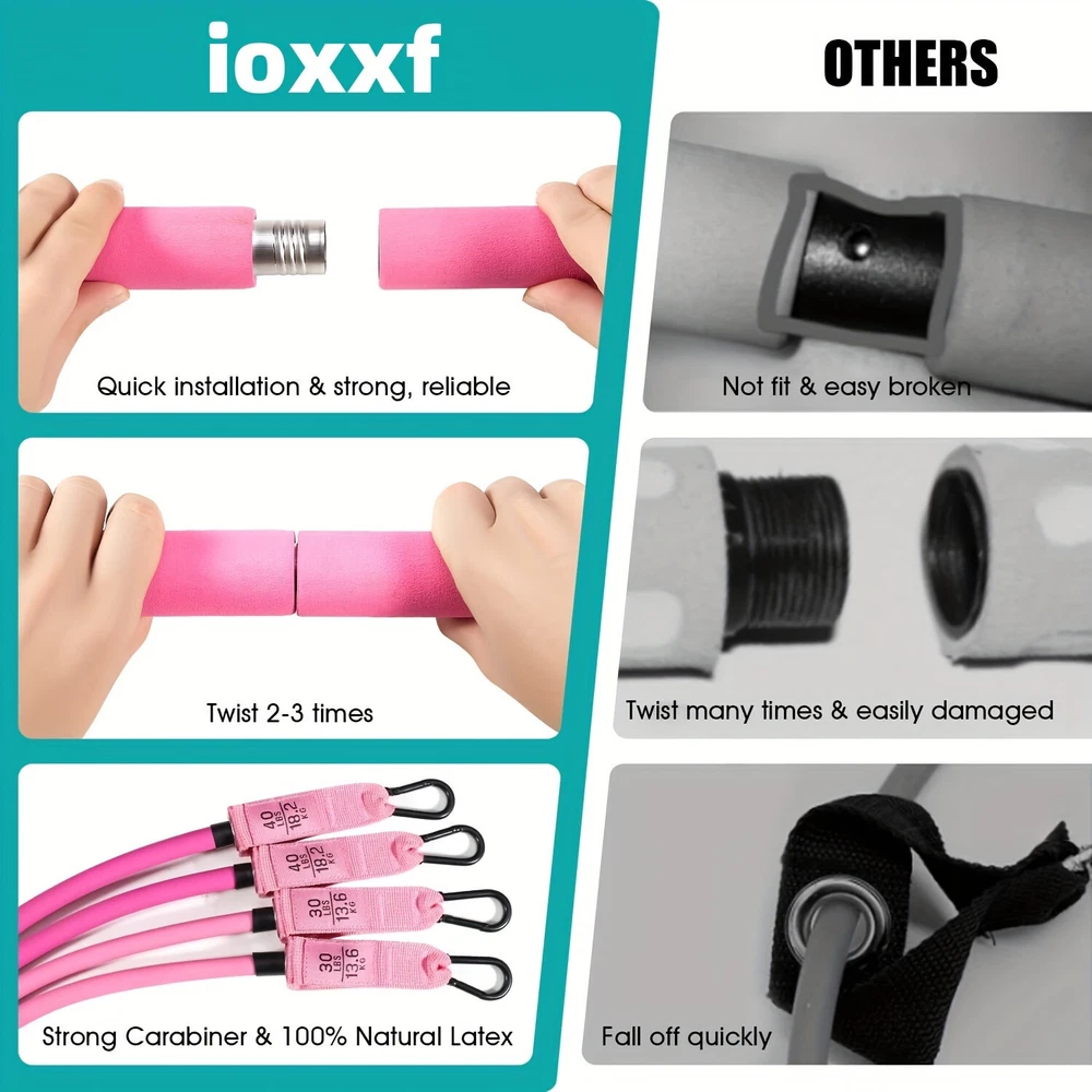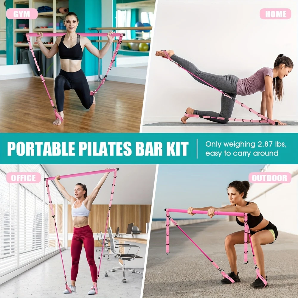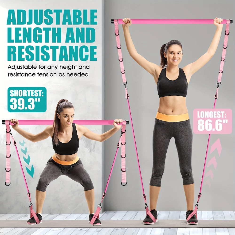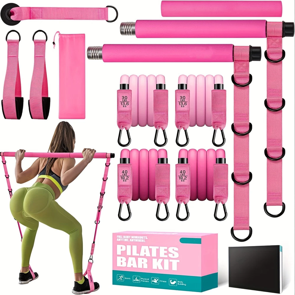1pc Pink 3-Section Stackable Resistance Bands Pilates Bar Kit with Handle - Med