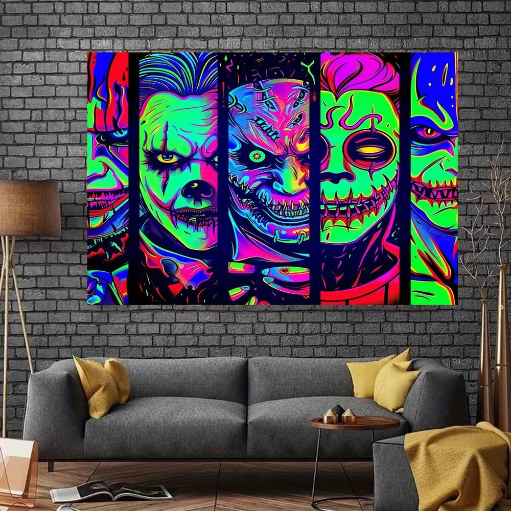 1pc Polyester Horror Clown Tapestry Wall Decor, Aesthetic Unique Artwork for Bed