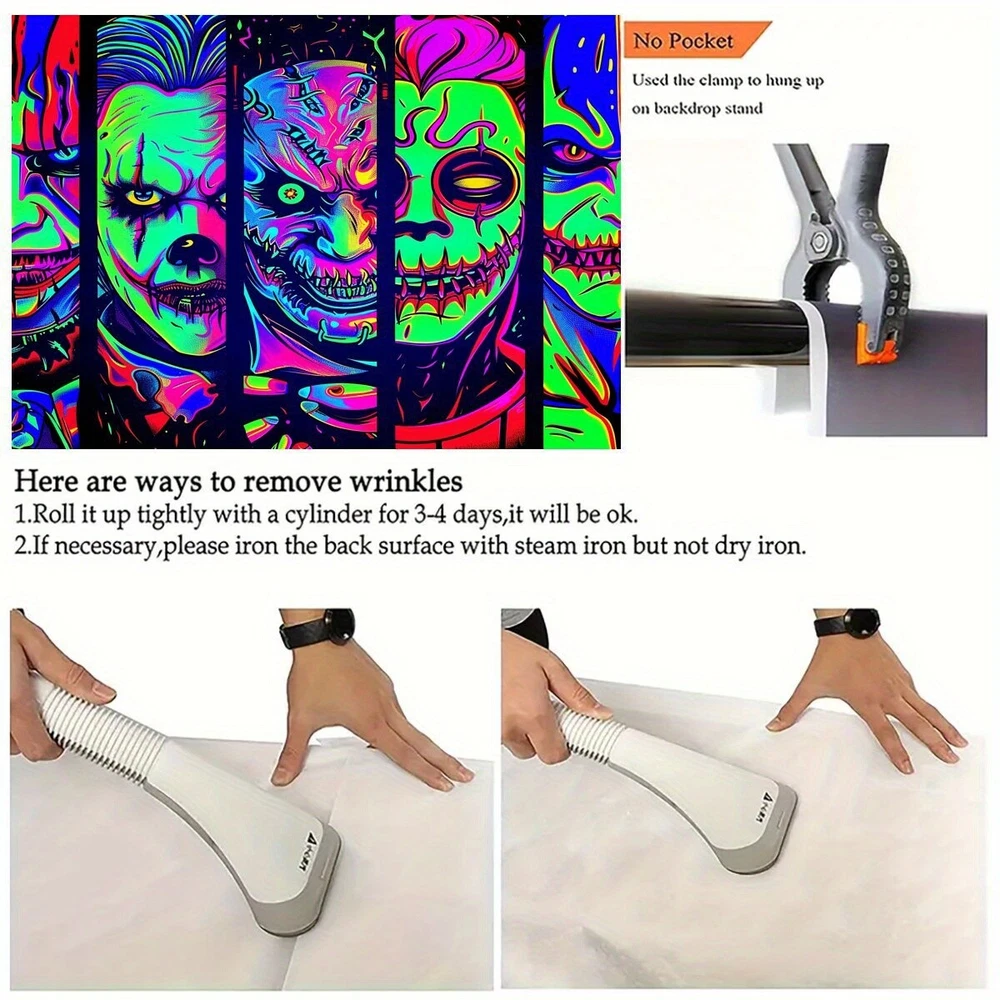 UV Reactive Geometric Tapestry - Fluorescent Blacklight Wall Art for Parties & F