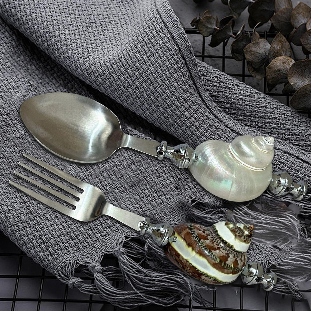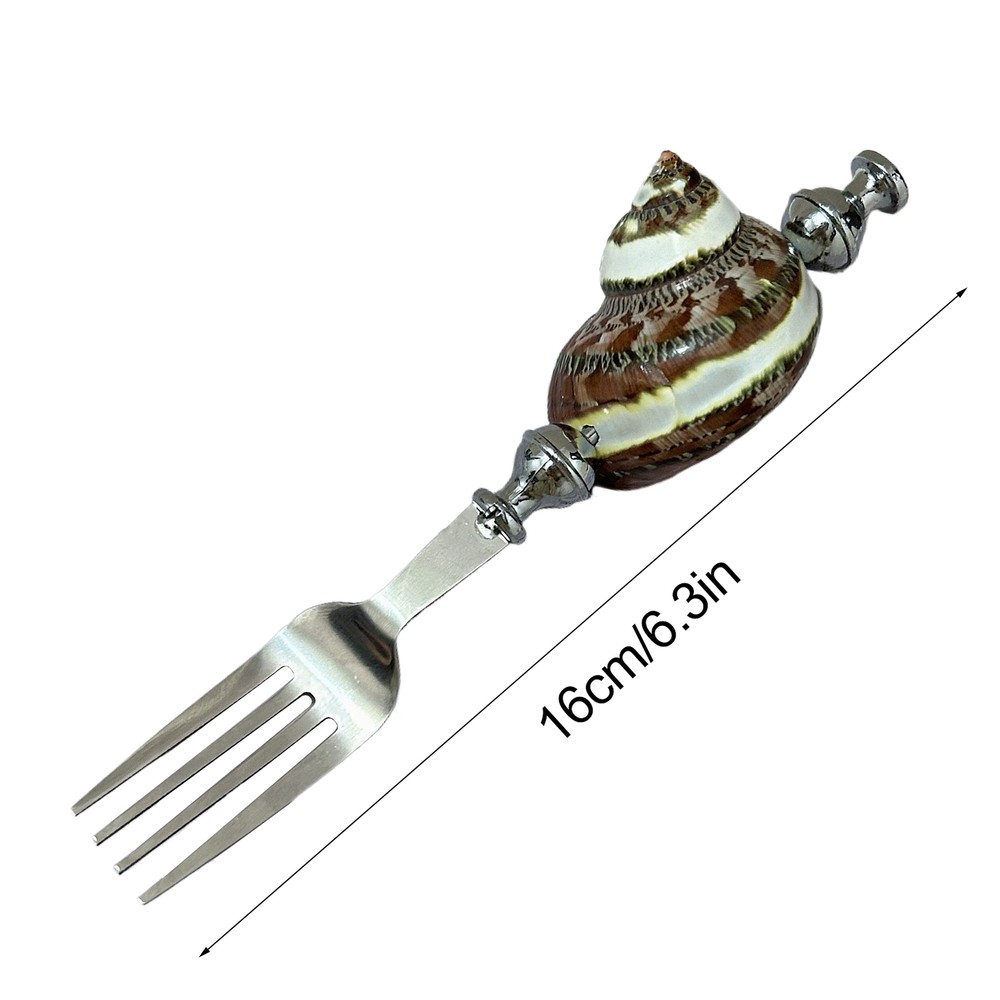 Bullet Points: Artistic Conch Shell: Enhance your dining experience with the unique texture and color of our shell design forks, crafted from natural conch shell material. Perfectly integrating into your dining table decor Fine Crafted: Indulge in gourmet meals with our shell design forks, meticulously crafted to evoke the charm of the sea and imrpove your dining experience Sturdy and Rust-Resistant: Enjoy your meals with these stainless steel shell design forks, ensuring sturdy and rust-resistant utensils that remain clean and refreshing Widely Applicable: Set the tone for sea-themed parties with our shell design forks, perfect for daily use and special events. Add elegance to your meals and transform your dining experience Good Present: Send care and blessings with these shell design forks, the perfect daily surprise and thoughtful holiday present to give to relatives and friends This stunning spoon not only assures durability and rust resistance but also enhances your dining experience with its unique design. With wide uses, it provides daily surprises in your kitchen. Material: Shell, conch, stainless steel Product Size: Approximately about 16cm/6.3 inches in length (handmade, may vary) list: shell design forks*1 piece