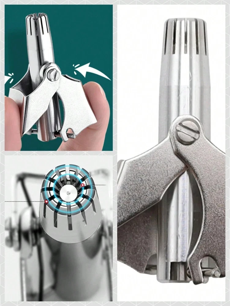 1pc Stainless Steel Manual Nose Hair Trimmer For Men, Can Also Be Used For Body Hair Trimming And Cleaning, Washable Mechanical Nose Hair Clipper Suitable For Both Men And Women, Nose Hair Cleaning Tool Package Contains 1x Manual Nose Hair Trimmer