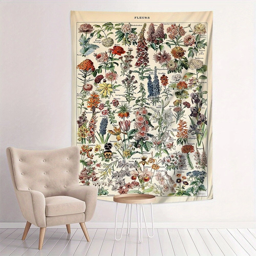 1pc Vintage Floral Tapestry Wall Hanging, Botanical Print Decorative Fabric for