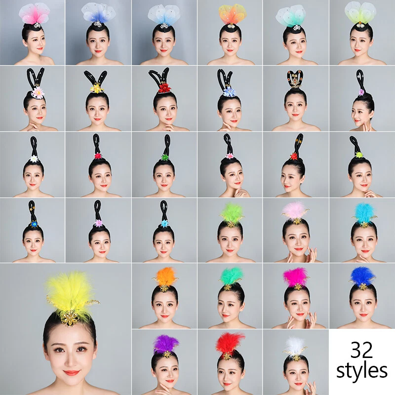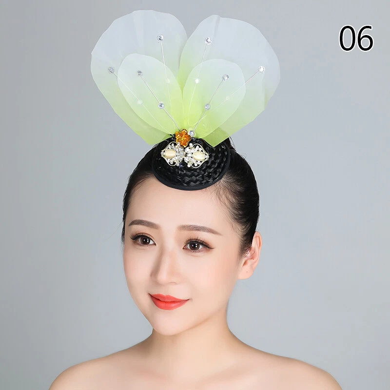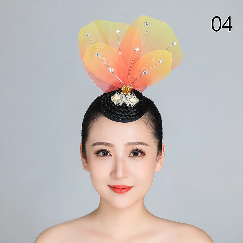 1pc Yangko Folk Dance Tiara Dance Classical Dance Head Flower+Hair Bun Headdress Material: Acrylic & Alloy Package includes: 1 Pcs Hair Band Note: Due to the light and screen setting difference, the item's color may be slightly different from the pictures. Please allow slight dimension difference due to different manual measurement.