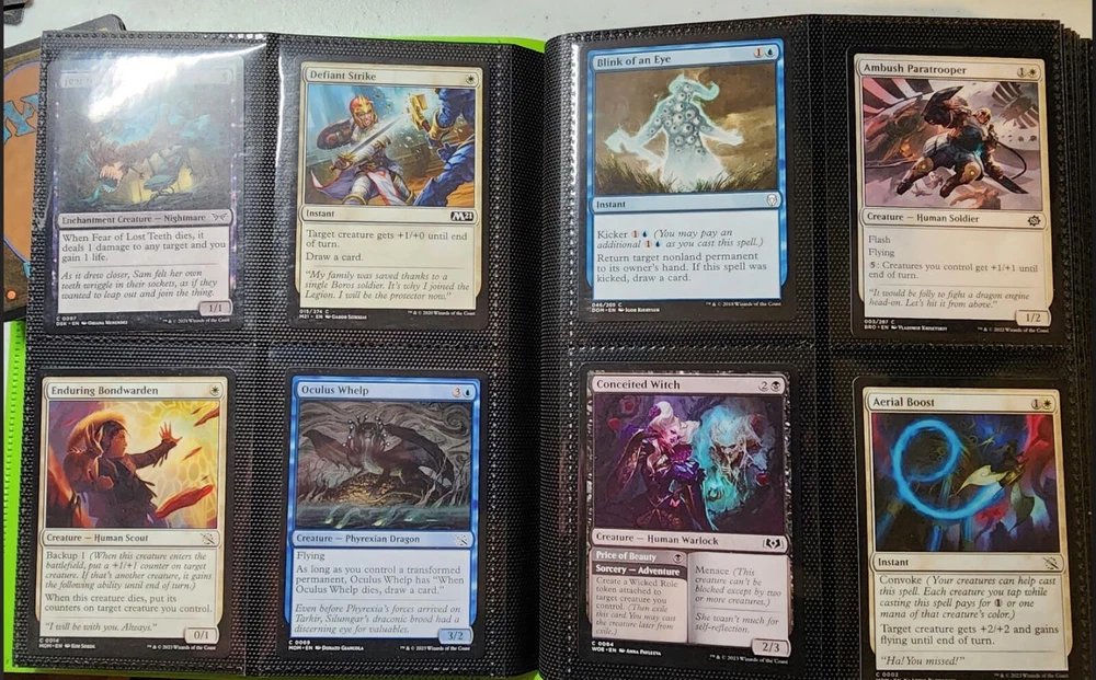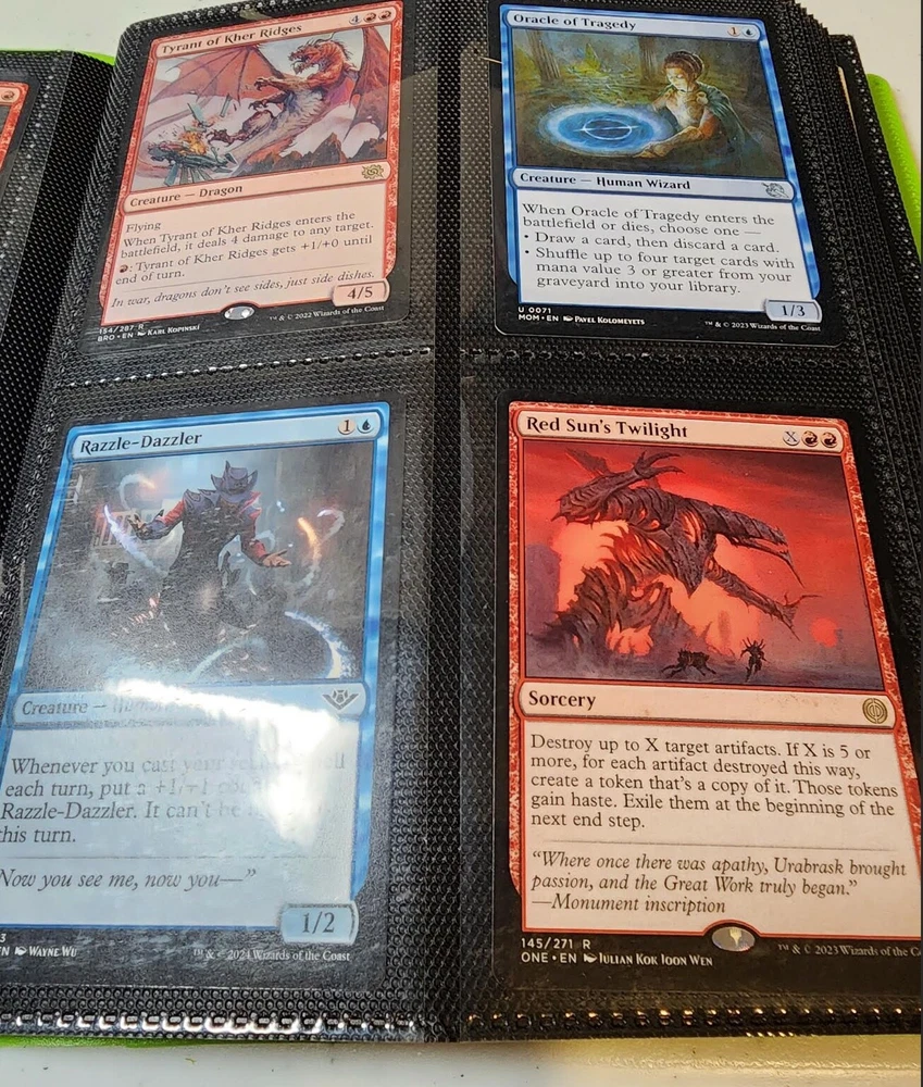 1x Filled 4-pocket [160 cards] MTG UGLY BINDER INSANE CARDS NM/LP [ID: PT5] Make sure here you don't "judge a book by its cover!" There are some cool cards inside this worn shell. Every slot filled with a card. Cards are clean, generally unplayed (pack fresh) in NM and LP condition. A rare damaged or MP/HP may slip past us and be included: check our reviews to see if this is a common occurrence. We strive for all cards to be NM/LP. Sales final, no returns. Thanks and let me know of any questions. FEEDBACK: Think we can do something better? Please let us know and share your comments with us. Thanks for stopping by! Rock Fortress Trading Binder ID: PT5