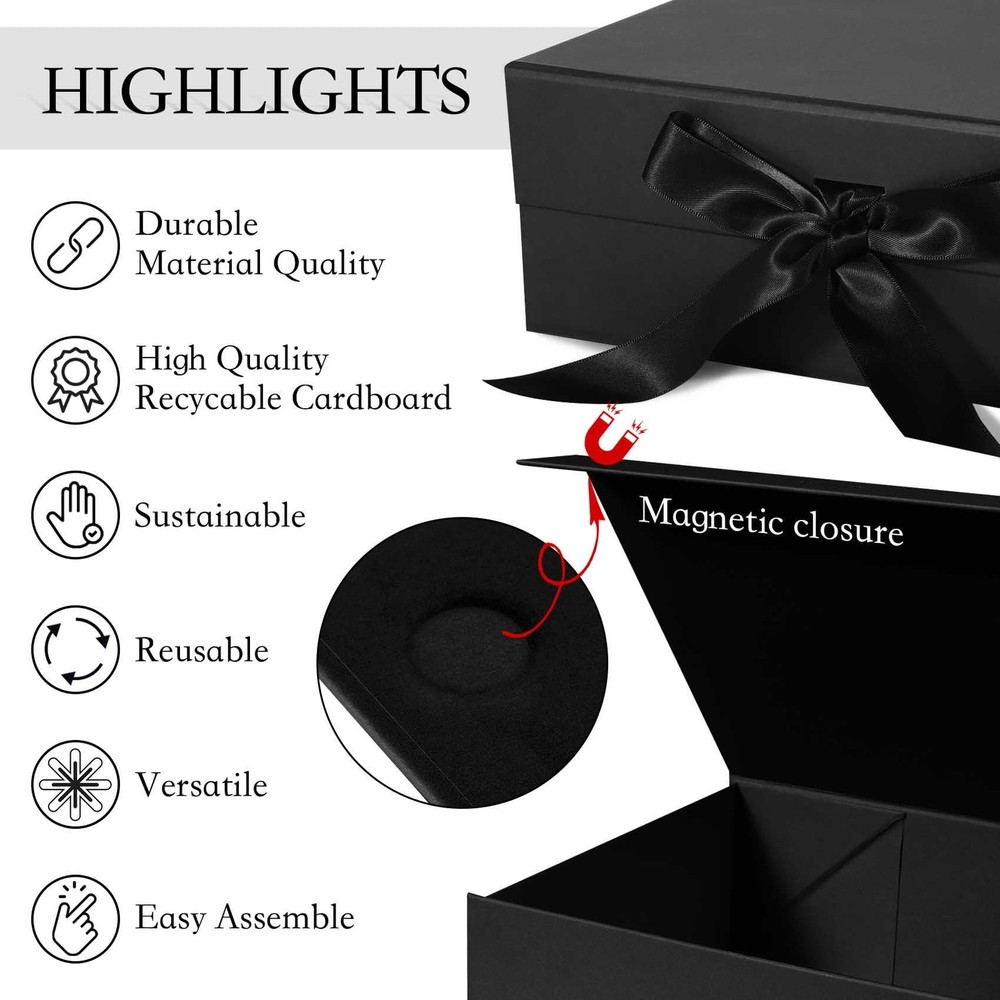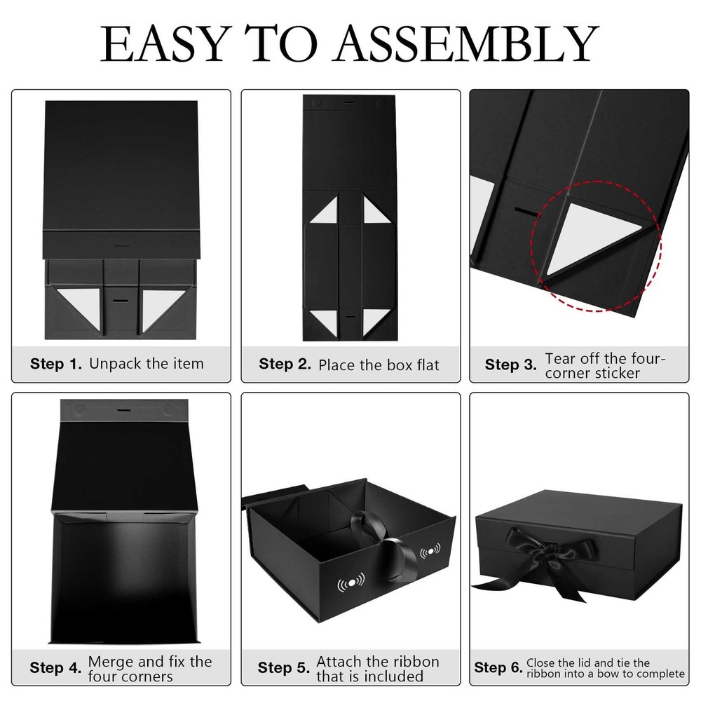 Descrip tion 1x Hard Gift Box With Magnetic Closure Lid 9"x7"x4" Black for Presents,Birthday Item Type: Gift Box Condition: Brand New Color: Black Product Size : 9.45x6.89x4.13 in Mat erial : Paper Nu mber of Pie ce s : 1 MAGNETIC CLOSURE: This box comes with a strong built in magnetic seal which will keep the box closed. EASY TO ASSEMBLE: This box is shipped flat and assembles in seconds, just lift the sides up, remove the white strip and press the self-seal to seal. Super simple and super clean! RIBBED FINISH: This beautiful gift box will wow your recipient and take your gift giving to the next level! Occasions FOR USE: A perfect box suitable for various gifting occasions—birthday gifts, Christmas gifts, bridal gifts, hostess gifts, and more. It can also be used for storage, such as stationery, skincare and makeup products, craft supplies, etc. Shipping Terms 1.We ship within 3 business days of payment, usually sooner. 2.All orders will be shipped out via USPS or UPS or Fedex express with a tracking number, 3.which will take 2-6 business days for the delivery. 4.We only ship to the lower 48 states, no APO/FPO addresses or PO Boxes allowed. Local pickups and combined shipping options are not provided at this time. Return Terms 1.You may return the product within a maximum of 30 days from the date of purchase. 2.If the item you received does not meet your expectations, is defective, or has any other issues, please contact us first . We will do our utmost to resolve the matter to your satisfaction. Feedback 1.Please kindly leave us a positive feedback and 5 star DSR if you satisfied with our product and service. Please feel free to contact us firstly if you have any problem with your order, we are responsible and credible seller and will solve the issue it for you asap. 2.If you are dissatisfied for any reason, please don't be quick to leave us neutral or negative feedback. We work hard to make sure EVERY CUSTOMER 100% SATISFIED and resolve any problem for you and always leave positive feedback to all our customers
