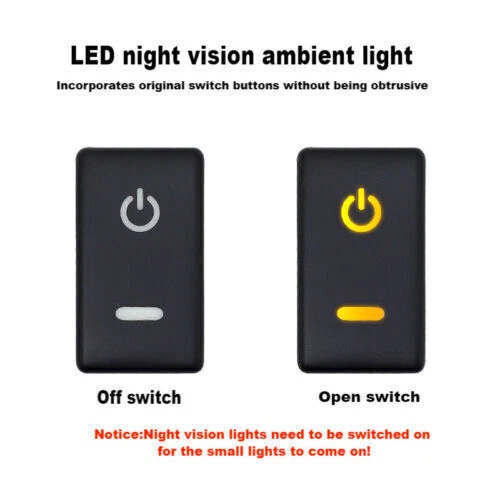 Lighting Technology: LED Universal Fitment: No Performance Part: No Working temperature: -20~80 (℃) Manufacturer Part Number: Dashboard Control Switch Button Type: Dashboard Control Switch Button Material: ABS+PVC+Electronic Components Color: Black Voltage: DC12V -DC24V LED color: Amber Vintage Part: No Brand: MQ Light Color: Amber Light