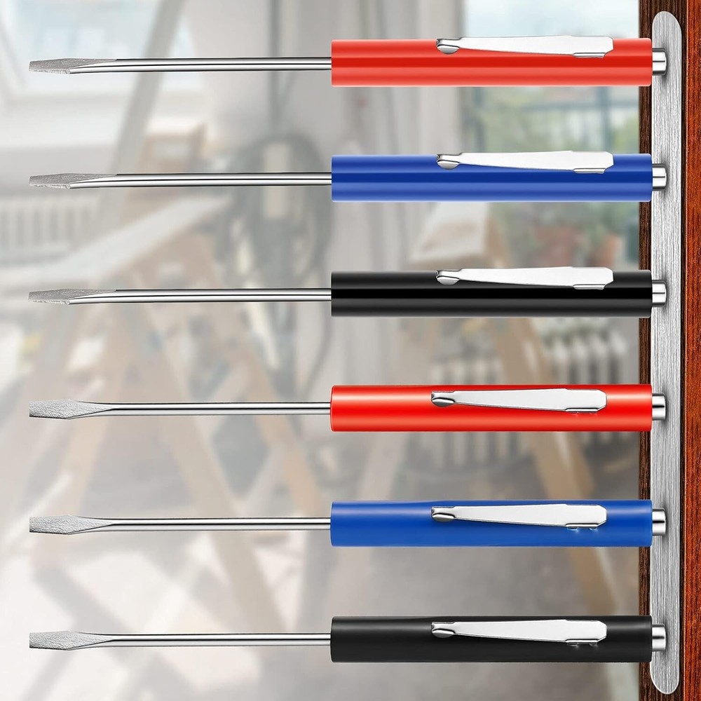 12 Pack Pocket screwdriver set: the package includes 12 pieces of mini pocket screw drivers in 3 different colors, 4 each for red, blue, and black, pocket screwdrivers, the quantity is sufficient to meet the needs of your family, and you can also share with others Magnetic design: there is a single blade head and a magnet at the top of pocket screwdriver, which is practical, cute and easy to use, improving your work efficiency and saving your time Broad utilization: magnetic tip slotted pocket screwdriver kit can be widely applied for mechanicals, electricians, electronics technicians, assemblers, etc., and also suitable for repairing glasses, children's toys, jewelry, games, keyboard and others Material: the pocket screw driver consists of plastic shell handle and steel tip body, reliable, sturdy, stable, no glitches, not easy to break or damage, can serve you for a long time and give pleasant using experience Mini and portable: the total length of each magnetic pocket screw driver is about 5.3 inch, and the cutter head specification is 0.1 inch, the head specification of the pocket screwdriver with magnet measures about SL 3.2 mm, small size and light weight makes it easy to carry around and store, you can put it in your pockets, boxes, bags and more 2 Pack 【Design】These pocket screwdrivers are flat heads with magnet tops,they can meet almost daily use. 【Multiple Carrying Options】The mini screwdrivers have pocket clips,they are pretty strong and can fit well in your shirt pocket.We also provide you with a screwdriver bag,if you don’t want to stick the screwdriver in your pocket, or work around a lot of steel, worry that the magnet will pull the screwdriver out of your pocket, you can carry it in the screwdriver bag. 【Function】The magnetic tips are strong enough to pick up most little things where fingers can’t go,you can use it for small repairs and replacements, including glasses, toys, jewelry, keyboard and more items that consist of small screws.Besides, you can also use it as a tool to pry small decorations inside the car. 【High Quality】It is mainly made of steel with plastic handle, sturdy and reliable to use. 【After-sale Service】If you have any questions, please feel free to contact us,We offer timely customer support to all buyers. THANK YOU