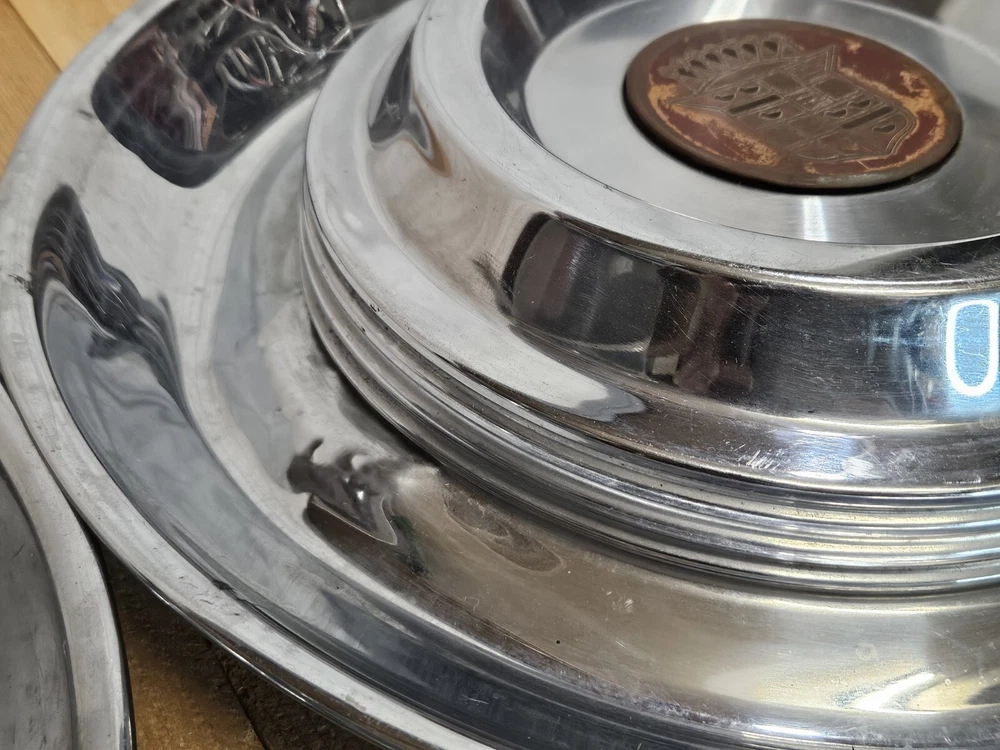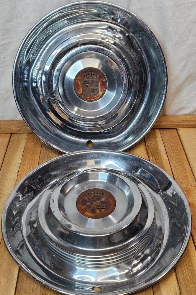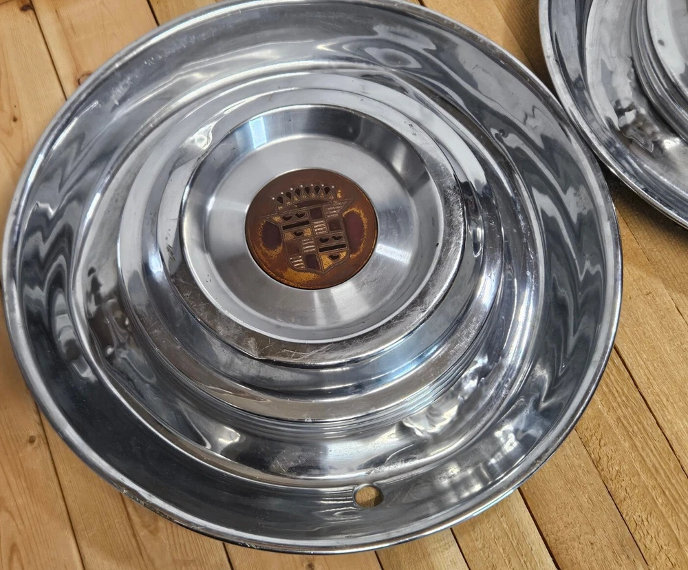 CADILLAC DEVILLE 1950'S VINTAGE HUBCAPS DENTS AND BLEMISHES. PLEASE SEE ALL PICS. SHIPPED WITH USPS WE PACKAGE AND SHIP SAME OR NEXT BUSINESS DAY. MULTI-LAYER PACKAGING TO PROTECT YOUR PURCHASE ALL PHOTOS OF ACTUAL ITEM 🌲🌲🌲@MYRAGGS🌲🌲🌲 SEARCH OUR OTHER LISTINGS!! WE MAY HAVE WHAT YOU'RE LOOKING FOR. WE CONTINUALLY SOURCE UNIQUE AND INTERESTING ITEMS. BOOKS TOYS TOOLS DOLLS SHOES BOOTS CHRISTMAS ORNAMENTS & DECORATIONS FIGURINES CRYSTAL DISNEY STARBUCKS MUGS MASKS AND FLASKS PHOTOGRAPHY COIN & STAMP COLLECTING PHILATELIC NUMISMATIST CLOTHING MAGAZINES DUNGEONS AND DRAGONS SWAROVSKI BIRTHDAY WEDDING VALENTINES GRADUATION GIFTS AND MUCH MUCH MORE. CLASSIC AMERICAN CAR PARTS CADDY CROWN MISS CENTURY AUTOMOBILE MAN CAVE DECOR GARAGE COLLECTIBLE UPCYCLE ART AMERICANA