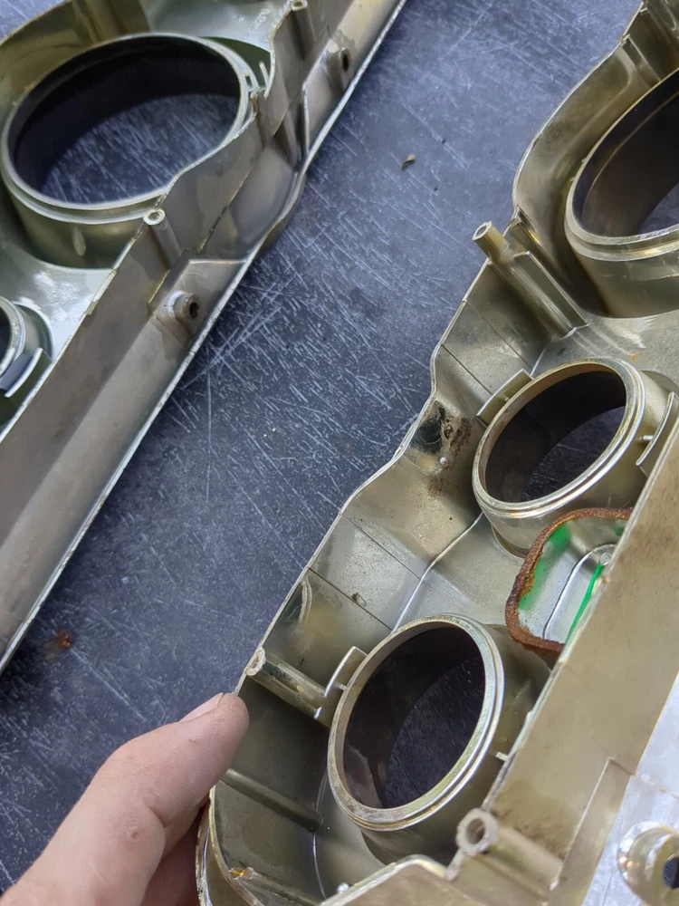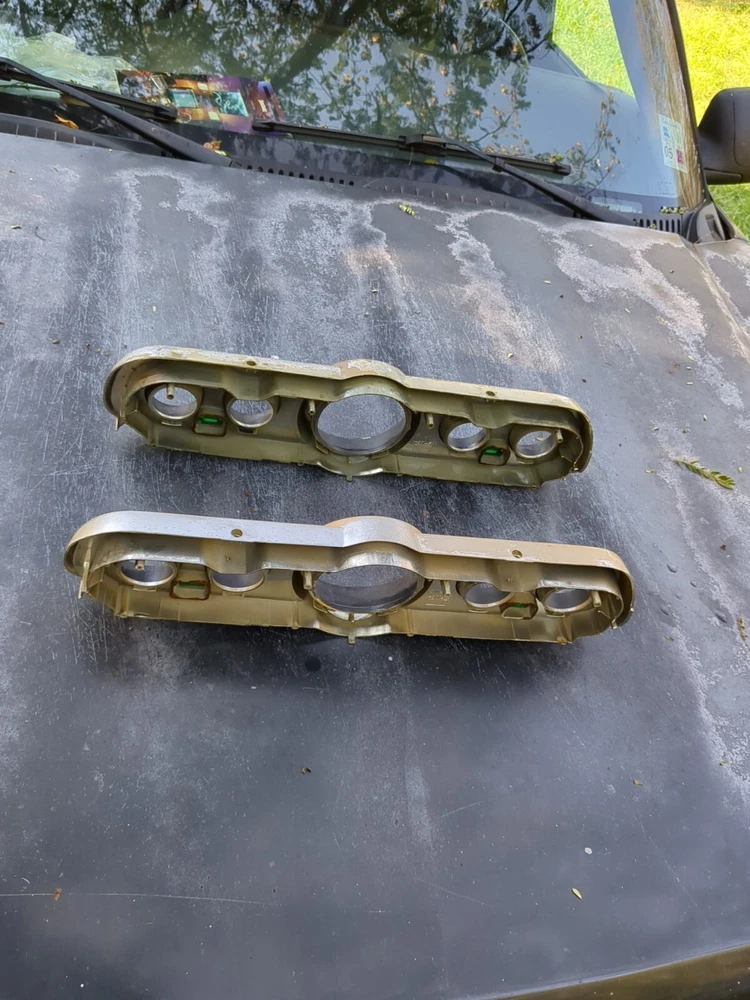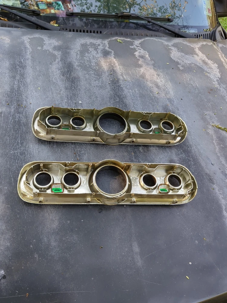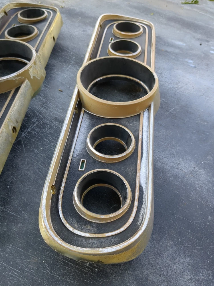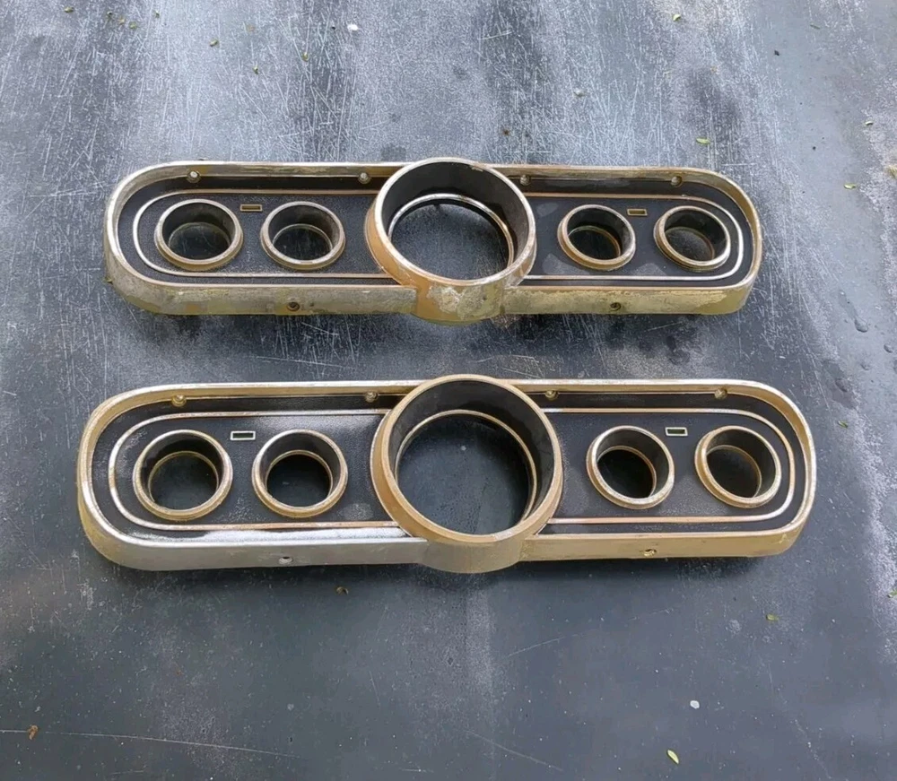 2 for the price of one! Definitely needs to be repainted but great structural integrity and no cracks, not dried up. One does have a cracked screw hole but the other one is perfect except paint. This vintage gauge bezel instrument cluster for a 1965-66 Ford Mustang is a rare find for any car enthusiast. With its original and authentic design, it is the perfect addition to any restoration project. The gauge is in great working order and has been well-maintained for its age. The cluster is designed for individual gauges and has a unique style that is both classic and timeless. It is compatible with a variety of vehicles and is sure to impress any collector. The part number for this item is C6ZF10841 and it is a vintage part that has been carefully preserved. Don't miss out on the opportunity to add this rare find to your collection!