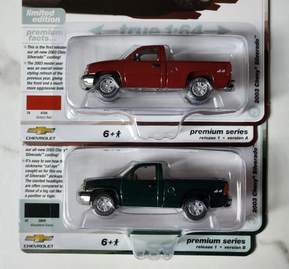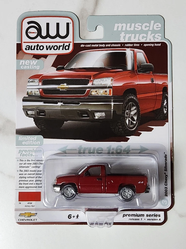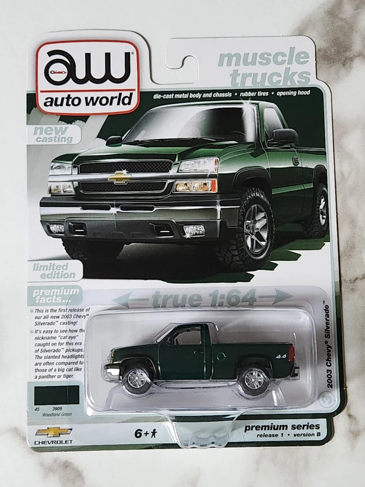 (Lot of 2) 2024 Auto World Muscle Trucks Red - Green 2003 Chevy Silverado Release 1 & 2 TOTAL OF 2 TRUCKS. 1 RED & 1 GREEN. NEW / UNOPENED / MINT FAST & FREE SHIPPING! THANK YOU!