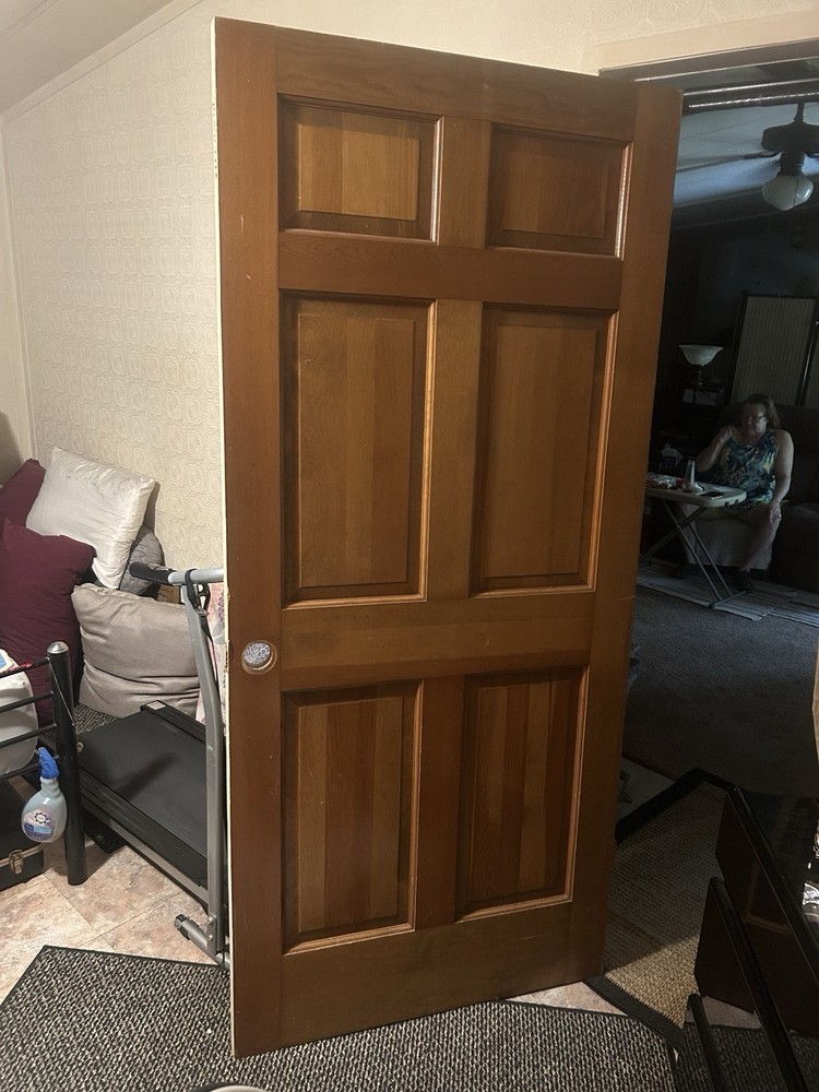 This product is a set of two 36" solid hardwood panel stain-grade doors made in the 1930s. These antique style panel doors are crafted from oak wood with a solid wood core, featuring a brown color and lacquer finish. With a size of 80 x 36 inches and six panels, these doors are designed for any room with a regular closing mechanism and predrilled holes. The doors have a fire rating of B and weigh 100 lb each, making them suitable for left and right-hand/inswing use.