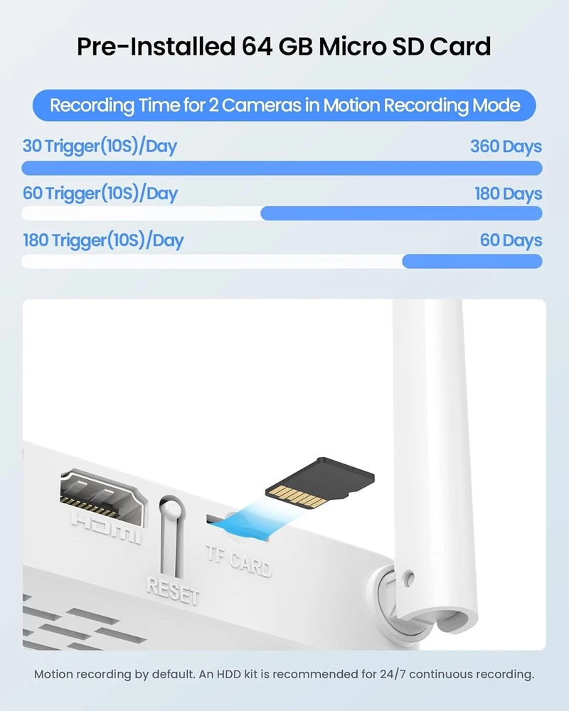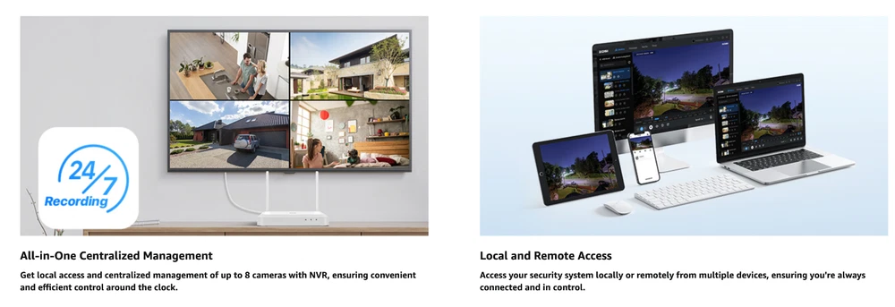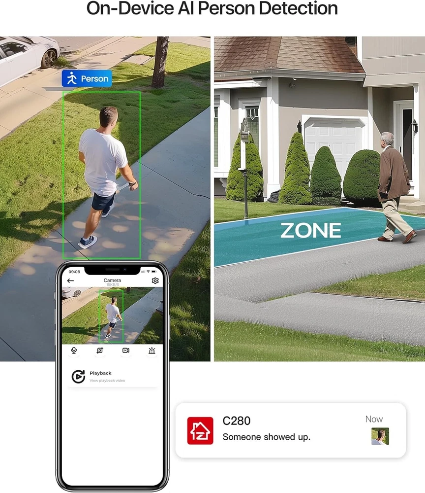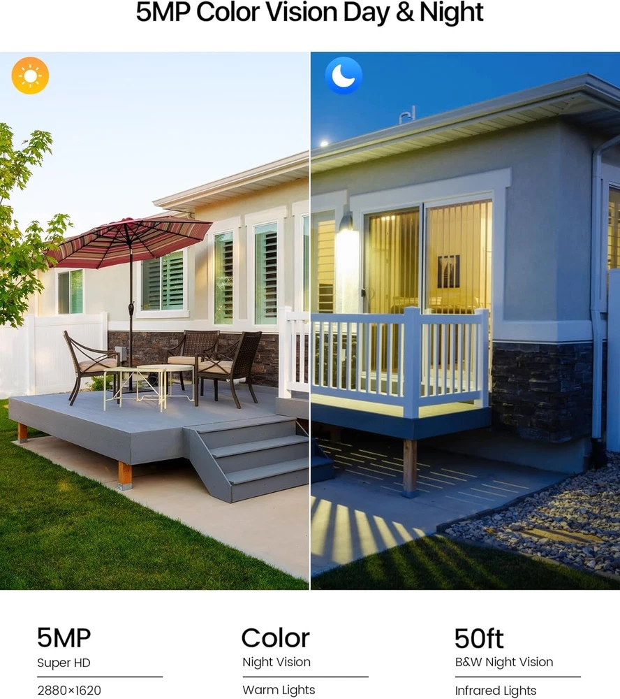 3K 5MP HD & Color Night Vision: Capture every detail with stunning 5MP clarity, The package includes an 8-channel NVR 64G SD Memory Card for 24/7 record and 2 X 5MP 3K IP66 weatherproof wireless cameras, which offer optional color night vision, providing vivid visibility even in low-light conditions, ensuring 24/7 comprehensive protection for your home. Full Coverage Pan/Tilt & Human Auto Tracking: Featuring a remarkable 355° horizontal rotation and 95° vertical tilt, this pan/tilt camera delivers full coverage, leaving no blind spots. Its intelligent human auto-tracking capability allows the camera to seamlessly follow and record movement, ensuring maximum security for your home and loved ones. Smart AI Detection & Real-Time Alerts: Utilizing cutting-edge AI technology, the ZOSI smart WiFi camera offers accurate human detection, significantly minimizing false alarms. You can customize detection zones to prioritize key areas of interest. When motion is detected, the camera triggers sound and spotlight alarms, sending real-time push notifications and email alerts to keep you promptly informed of any potential threats. Two-Way Audio & Remote Access: Enjoy seamless communication with the built-in two-way audio, enabling you to speak with family, pets, or visitors from anywhere. Easily access and manage your camera remotely via the ZOSI Smart App, providing real-time control and interaction. Please note that this camera is exclusively compatible with the ZOSI Smart App. Wi-Fi 6 Technology: Harnessing the advanced capabilities of Wi-Fi 6 technology, the ZOSI C280 5MP 3K WiFi Security Camera System delivers exceptional connection stability, faster video transmission, and reduced latency. Enjoy uninterrupted, seamless surveillance that elevates your home security. Buyer pays actual USPS shipping cost. US Seller - not a drop shipper. All items are new in original packaging.