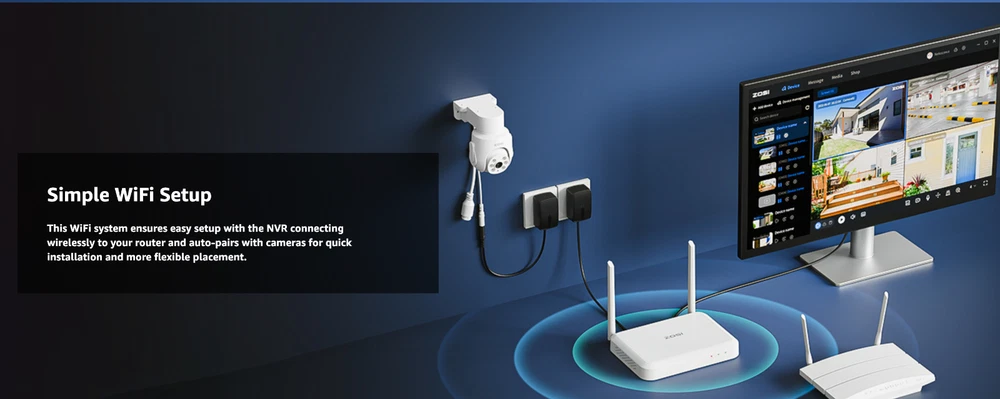 (2 5MP PTZ Cameras) 8 Ch. 3K WiFi Security Camera System, 64GB NVR, Night Vision