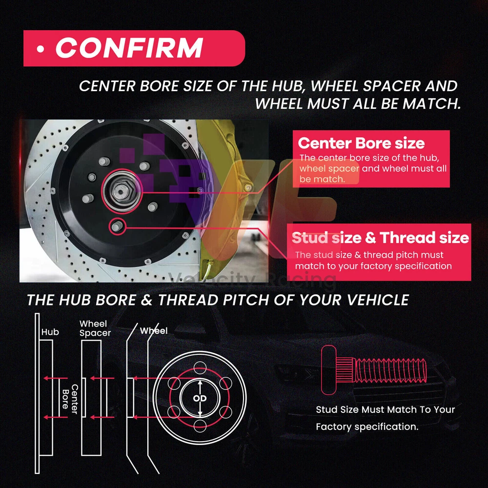 Spacer Thickness: 3mm each side Quantity: 2 Pieces Bolt Pattern: 5x114.3 to 5x114.3 (Equivalent to 5x4.5" inch) Center Bore: 67.1mm Extended studs ARE REQUIRED for installation (Not included)
