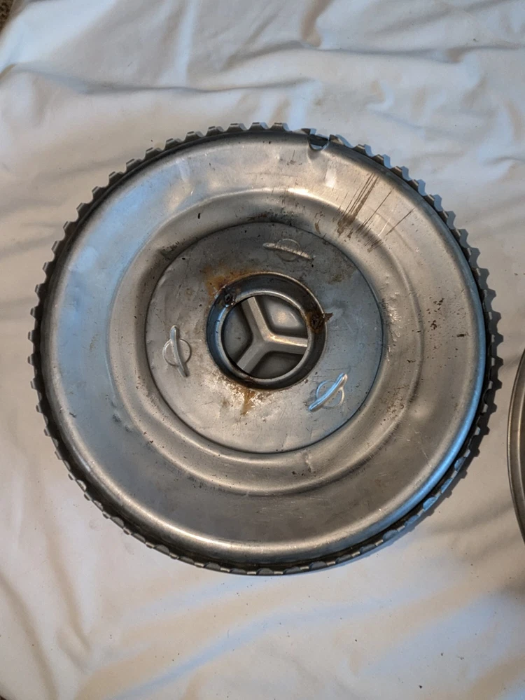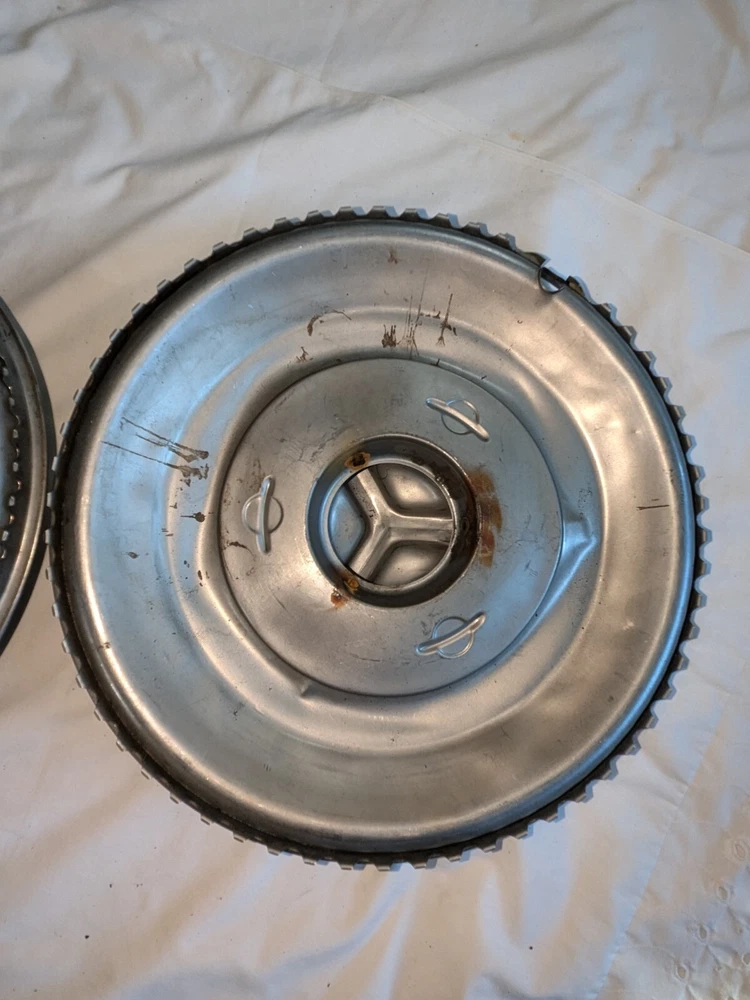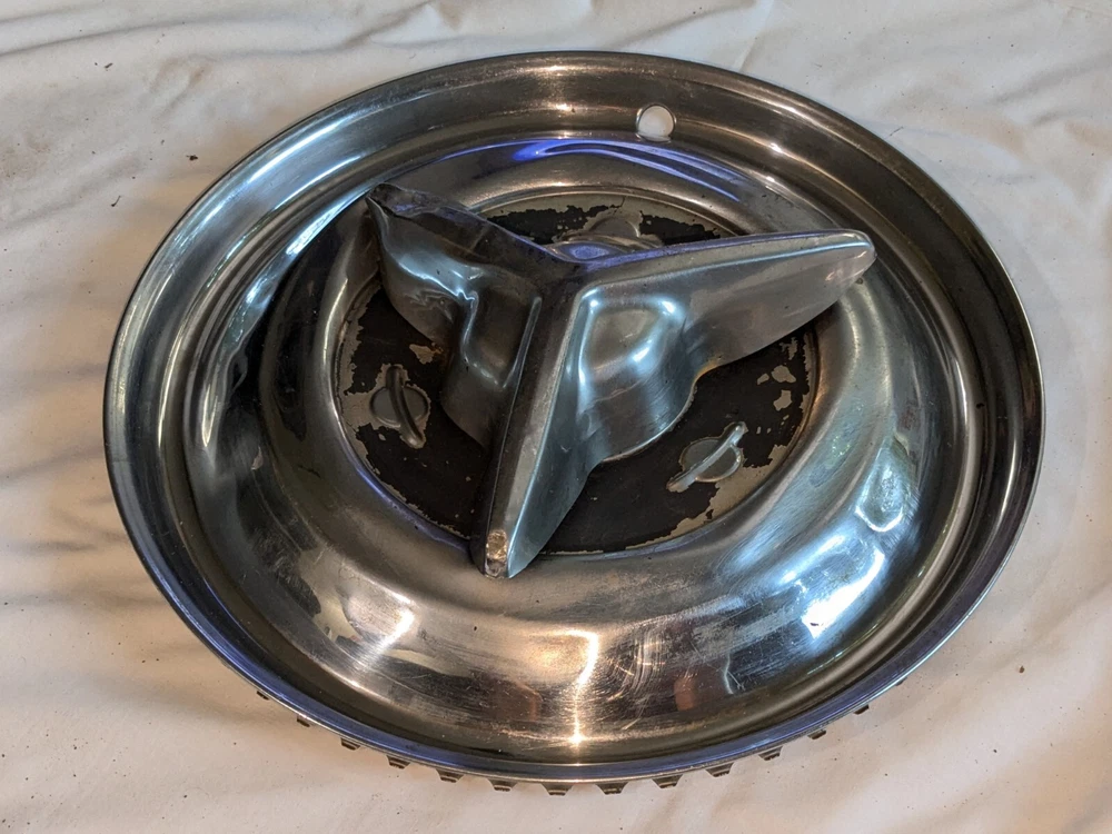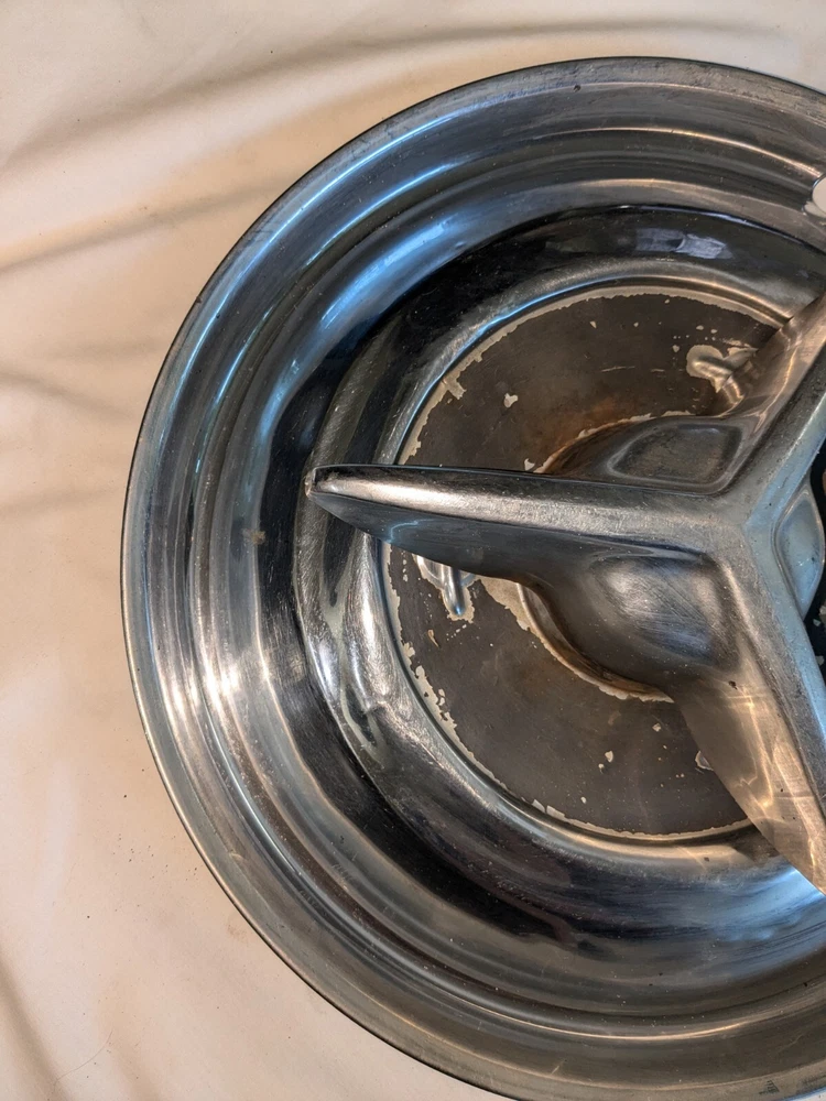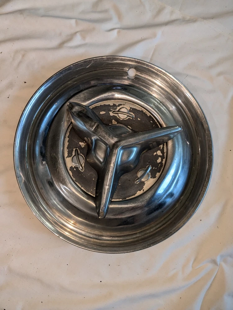 The photos show everything. As far as I know, these are for the year / make / model listed in the title. I could be wrong , they could fit these and/or other models, other years. I do not know . I am counting on you knowing, when you see them, if these are what you need for your automobile. There are no returns . You can see the condition of these hubcaps, they are dented, and you can see the spinner on the one hubcap is not attached. You will have to supply the screws on the back, as you can see in photo number 14. And on the other one, the spinner is attached. The spinner is a bit bent and/or dented, as you can see. This will need to be reshaped. You can see in the last photo of this particular spinner is attached to the hubcap, but the screws are rusted and may need to be replaced after you remove the spinner. I believe these to be fairly rare. They are approximately 15 inches in diameter, I am assuming for 15-inch wheels. I could be wrong. Again, I am counting on you knowing when you see them if these are what you need for your automobile. There are no returns. Be sure these are what you want. THESE WILL SHIP USING UPS, FEDEX OR USPS, WHICHEVER I SELECT AT TIME OF SHIPPING.