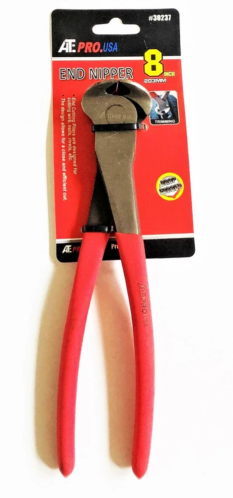 2 Brand New End Nipper Cutting Pliers Length: 8" Jaw Width: 1-3/16" Model Number: 30237 Drop Forged High Carbon Steel Hardened And Tempered Non-Slip Matte Cushion Handles Made By ATE PRO TOOLS Thanks For Looking