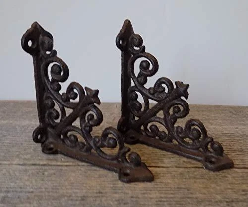 2 SMALL CAST IRON BRACKETS! NEW MADE TO LOOK OLD! EACH BRACKETS MEASURES APPROXIMATELY 3 7/8" FROM TOP TO BOTTOM AND EXTENDS APPROXIMATELY 3 7/8" FROM THE WALL! MOUNTING SCREWS NOT INCLUDED! 2 SMALL CAST IRON BRACKETS EACH BRACKET MEASURES APPROXIMATELY 3 7/8" FROM TOP TO BOTTOM AND EXTENDS APPROXIMATELY 3 7/8" FROM THE WALL! NEW MADE TO LOOK OLD!