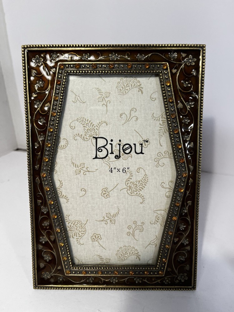 Set of two beautiful enamel embellished picture frames. Very ornate. Backs are felt easel style. One frame is 4” x 6” and the other is 4” x 4”. In excellent condition. Ships the next business day after payment😊