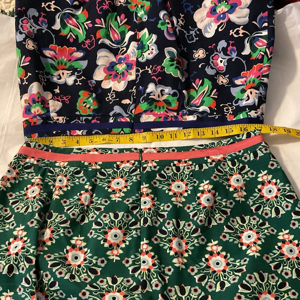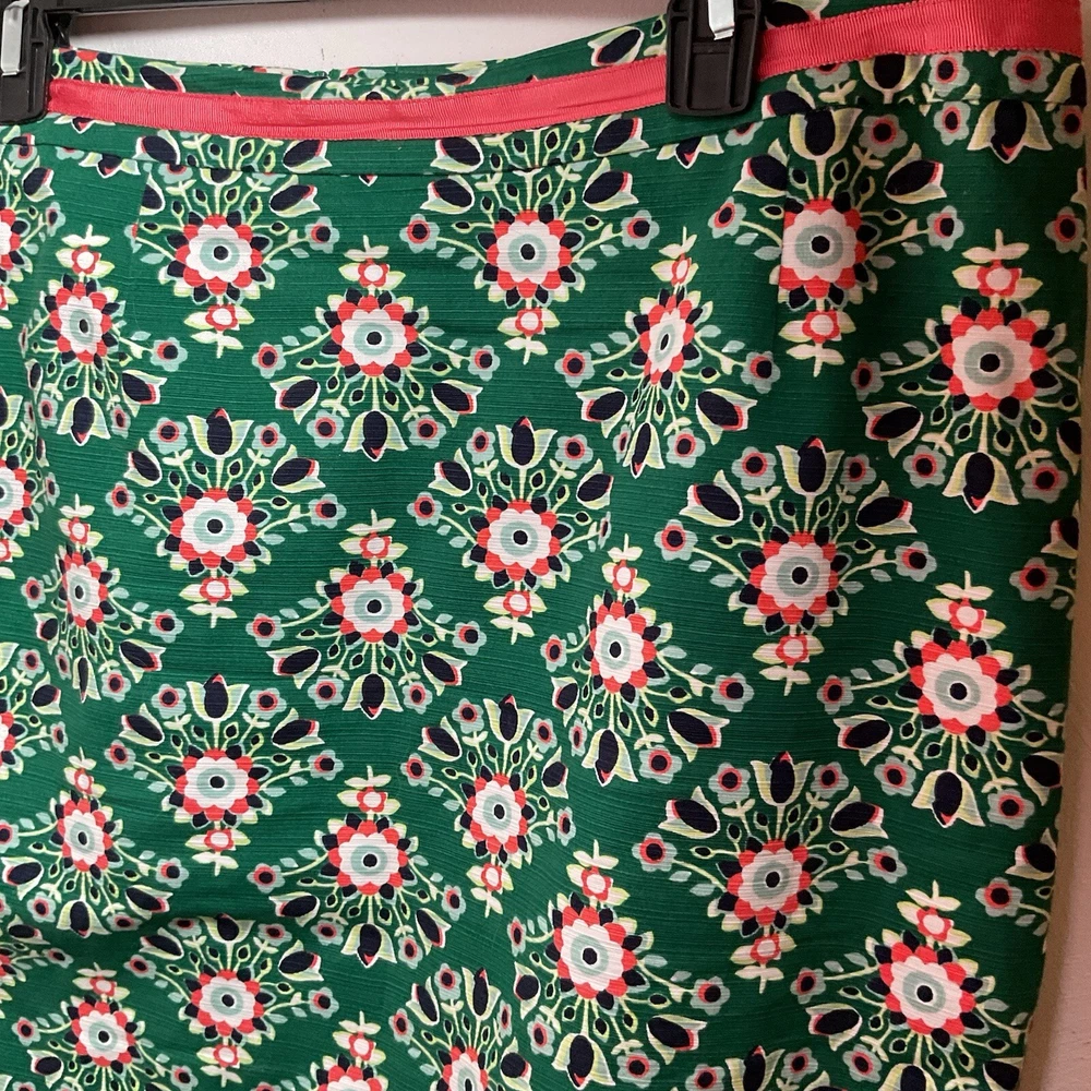 The Boden Professional Pencil Skirts in blue and then in green floral are stylish and versatile addition to any woman's wardrobe. Made from a comfortable cotton blend material, the skirts features a floral pattern and a ribbon accent for added flair. The knee-length straight and pencil style is perfect for various occasions, from casual outings to business meetings. The skirts are machine washable and suitable for all seasons, making them practical and fashionable choices for any size 12 woman looking for vibrant and classic pieces.
