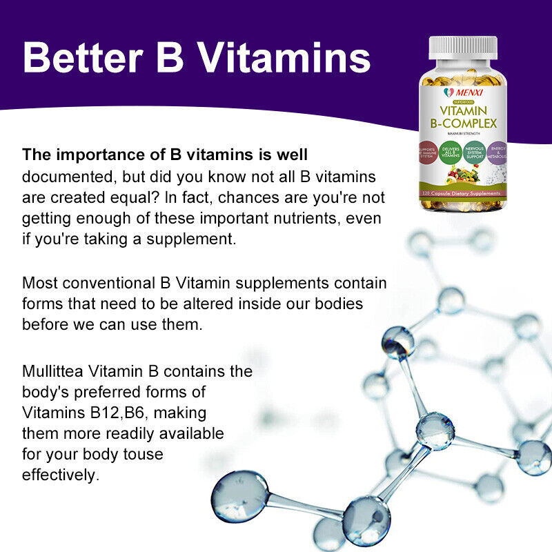 Store Categories Store Categories Other Vitamin B Complex Supplement - Super B Vitamin, Immune Boost, Metabolism, Energy Product Description Specification: Brand:MENXI Item Type:Vitamin B Complex Capsule Shelf Life:2years FEATURES: CONTAINS ALL B VITAMINS: B1, B2, B3, B6, Folic Acid, B12, Biotin, Pantothenic Acid, Niacin, Thiamin, Riboflavin, Folate, Choline & Inositol. EXTRA POTENT SOURCE OF B-COMPLEX VITAMINS - Our extra strength formula contains all the essential B Vitamins in just one capsule. If you'd rather take your B Vitamins (like B 12 & 6) together to maximize the benefits. MANAGE DAILY STRESS, AID NERVOUS SYSTEM & BRAIN HEALTH - Men, Women, and Children(3+) can benefit from supplementing their B Vitamin intake. Studies have shown B Vitamin supplementation can help to counter symptoms of deficiency. SUSTAINED RELEASE + ENERGY: Slowly releases over 6-8 hours to provide a steady balanced stream of B vitamins (Vitamin B2, B3, B6, B9, B12). Maintain healthy energy levels throughout the day. Supplement Facts: Serving Size:2 Capsules Amount Per Serving %DV* Vitamin C (ascorbic acid): 60mg 100% Thiamin (as thiamin manontrate)(B1):100 mg 8333% Riboflavin (B2):100 mg 7692% Pantothenic Acid (B5):100 mg 2000% (as d-calcium pantothenate) Vitamin B6 (as pyridaxine HCI): 30 mg 1765% Niacin (as niacinamide)(B3): 20mg 125% Folate (as 400mcg Folic acid)DFE: 680mcg 170% Vitamin B12 (as cyanocobalamin): 100 meg 4167% Biotin (as d-biotin): 100 mog 333% Choline (as choline bitartate): 20 mg 4% Coenzyme Q10(Ubidecarenone): 10 mg nositol: 100 mg Daily Value Not Established. Other Ingredients: Vegetarian Capsule(Plant lCellulose) Dosage : 1-2 vitamin B complex capsules a day, use according to your situation, swallow with water after meals. Note: Health products are not medicines, not any quick-acting drugs, and have no effect on the treatment of diseases Storage: After opening, please seal and store in a cool place away from direct sunlight。 Package Include: 2 bottles 60 pcs Vitamin B Complex Capsule Payment Policy Shipping Policy Returns Policy Feedback & Customer Service Payment Policy 1. Payment is needed to receive within 5 days after deal.if not we will close the transaction. 2. We only accept PayPal. 3. PayPal is the only online payment method we accept. Please make sure you have a valid/confirmed PayPal account prior bidding. And please make sure that your PayPal registed address is the same with your eBay registed address. 4. Import duties, taxes and charges are not included in the item price or shipping and handling. These charges are the buyer’s responsibility. Shipping Policy 1.We ship to your eBay address only, please check your shipping address before the payment, it can not be changed once the order is completed. 2.We will arrange shipping for you within 24-48 Hours after payment cleared except the holidays. 3.Tax is buyer duty, it is not included in our buy it now price. Returns Policy 1. If you need return, please contact us with Email before open a case, let us know the detailed problem and send us some pictures for confirmation. 2. All returned items must be in the original packaging and provide us tracking number, specific reason for the returns. Feedback & Customer Service 1.If you are not satisfied, anyway, feel free to give us the second chance give it to correct it before deciding to leave neutral or negative feedback. 2.Please contact us before you contact eBay if you have any problems. We will reply you within 24 hours and do our best to solve your problems. Please check spam mails if no answer for 48 hours. Copyright © 2023 Dianxiaomi