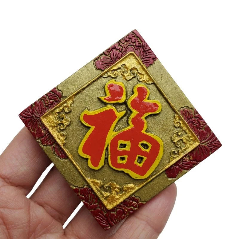 Set of Chinese New Year or Wedding Souvenir Magnet Another traditional Chinese character magnet "Fu" means Good Luck or Fortune. A common wedding present for newlyweds in the country or simply a gift for Chinese New Year. This makes it an amazing choice for your fridge magnet souvenir collection comes with a lot of good memories and luck. Get yours now! Color: red/multi Dimensions: 3''L x 3''H Material: resin, magnet Very cool souvenir magnet with three-dimensional feels to it Attach right on your fridge or any magnetic surface. Perfect for wedding gift or party favors Great addition to your souvenir collection