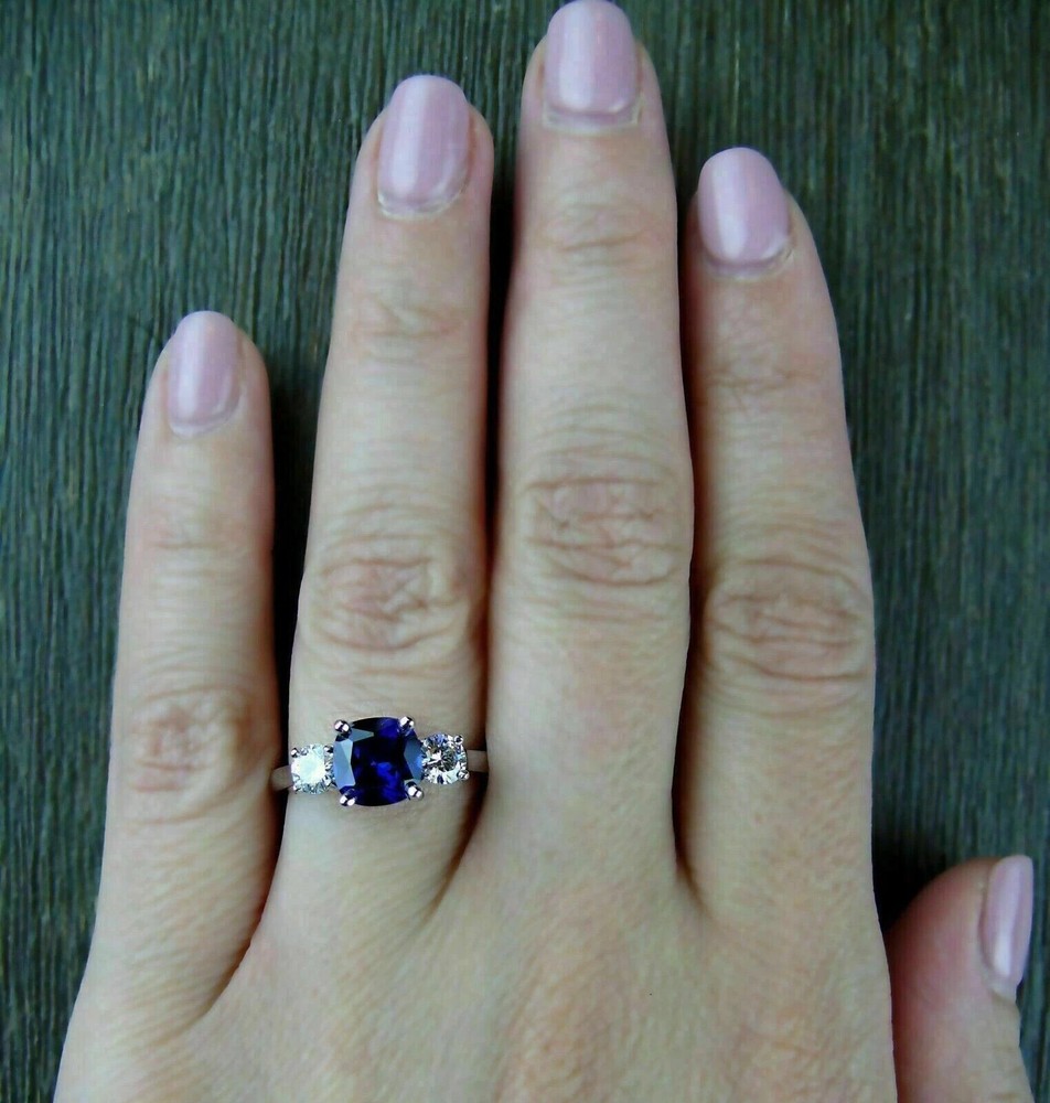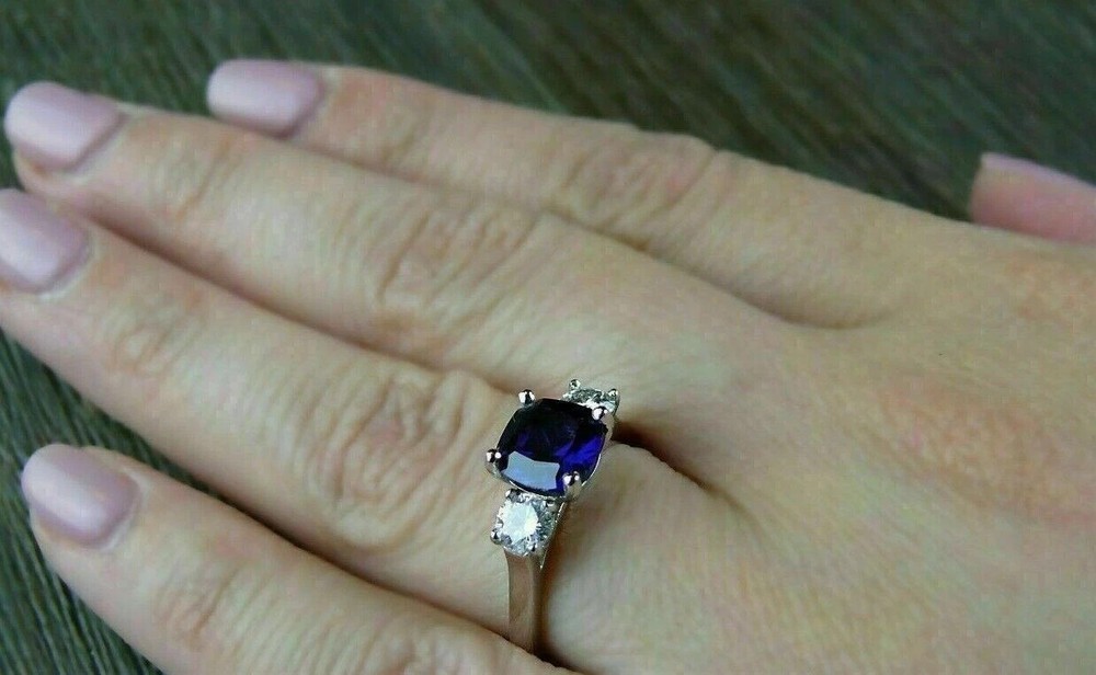 Elevate your special moments with the 2 Ct Cushion Cut Lab Created Blue Sapphire Engagement Ring, exquisitely crafted for a touch of elegance. Set in lustrous 14K White Gold Plated sterling silver, the ring showcases a stunning cushion-cut blue sapphire, complemented by a lab-created diamond secondary stone. Its VVS1 clarity grade ensures a near-flawless appearance, making it a true masterpiece to behold. Designed for discerning individuals, this solitaire ring is available in all sizes, with the option to personalize for a truly unique touch. The prong setting style secures the gemstones, while the exquisite cut grade promises brilliant sparkle. Whether it's for an anniversary, birthday, or any other significant occasion, this ring is a timeless symbol of love and commitment.