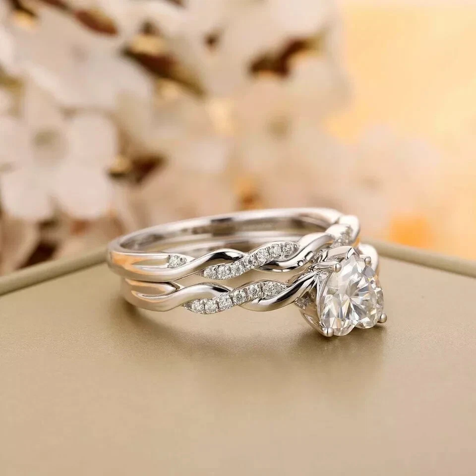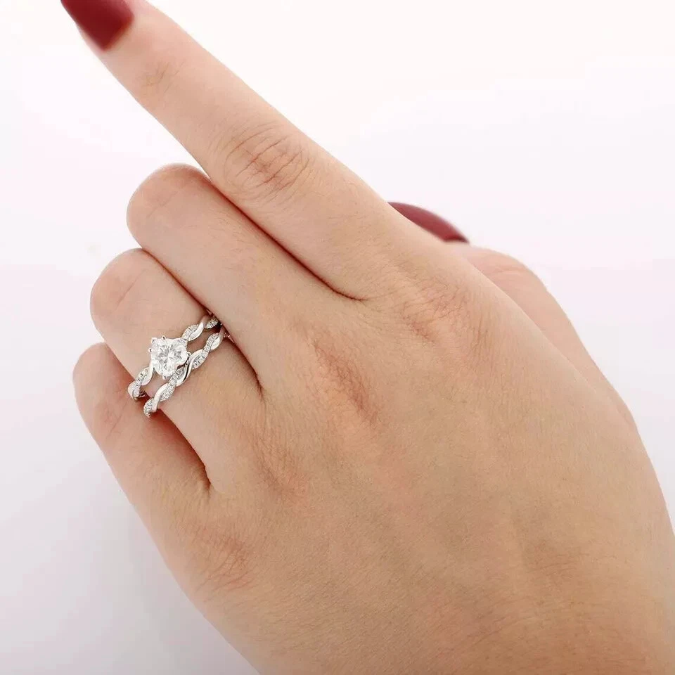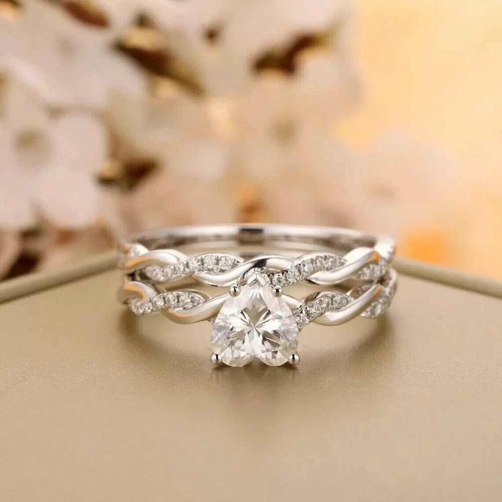 2 Ct Heart Cut Simulated Diamond Bridle Wedding Set 14k White Gold Plated