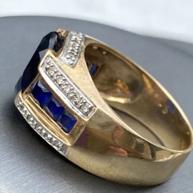 2.00 Ct Oval Cut Lab-Created Blue Sapphire Men's Ring 14K Yellow Gold Plated Customization: Want to add your personal touch to this piece? Contact us and we will create one just for you. Most customization requests include: 1) Ring Resizing 2) Redesign 3) Metal Change (Silver/10K Gold / 14K Gold /18K Gold) 4) Metal Color Change (White/Yellow/Rose/Black) 5) Color Stones (White Topaz, Pink Sapphire, etc) 6) Engraving (Name or any message - no of characters subject to size of jewelry) 7) Anything under the sun that catches your fancy, we will give it a try :) Payment: We accept payment via PayPal only. You can also pay using your credit card, via paypal, by using paypal as a guest. Payment is required within 3 days of the sale of an item. Shipping: International shipments are usually delivered within 2 to 6 weeks, depending on the time taken to clear customs. We are not responsible for any delays due to customs. Please note that all countries charge a duty on imported goods. A customs clearing charge is also imposed in many countries. We are not responsible for the amount of duty or any other related charges. Terms & Sale: We want to ensure that you are completely satisfied with your purchase. If not, then please let us know before leaving any feedback and allow us to work with you to completely resolve any issues that you might be facing. You can return the item for a full refund LESS shipping, within 14 days of item(s) receipt date. There is no restocking fee. 100% Satisfaction Guaranteed. All returns must reach us within 14 days after the item was delivered to you the item must be in the original condition and with the original tags attached. Contact Us: You can contact us by clicking on 'ask seller a question'