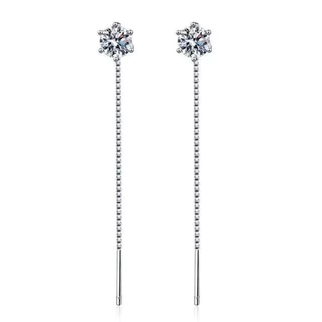 2 Ct Round Cut Lab Created Diamond Drop Thread Earrings 14K White Gold Finish