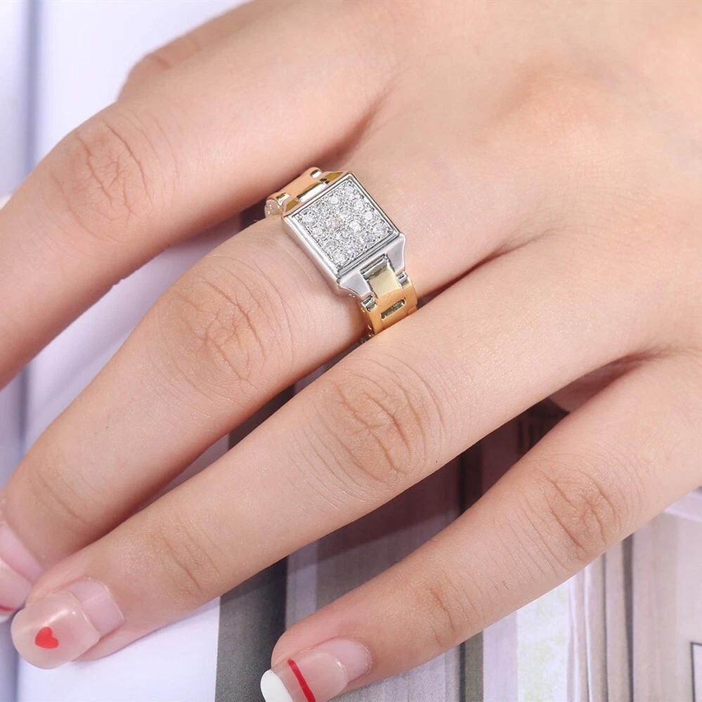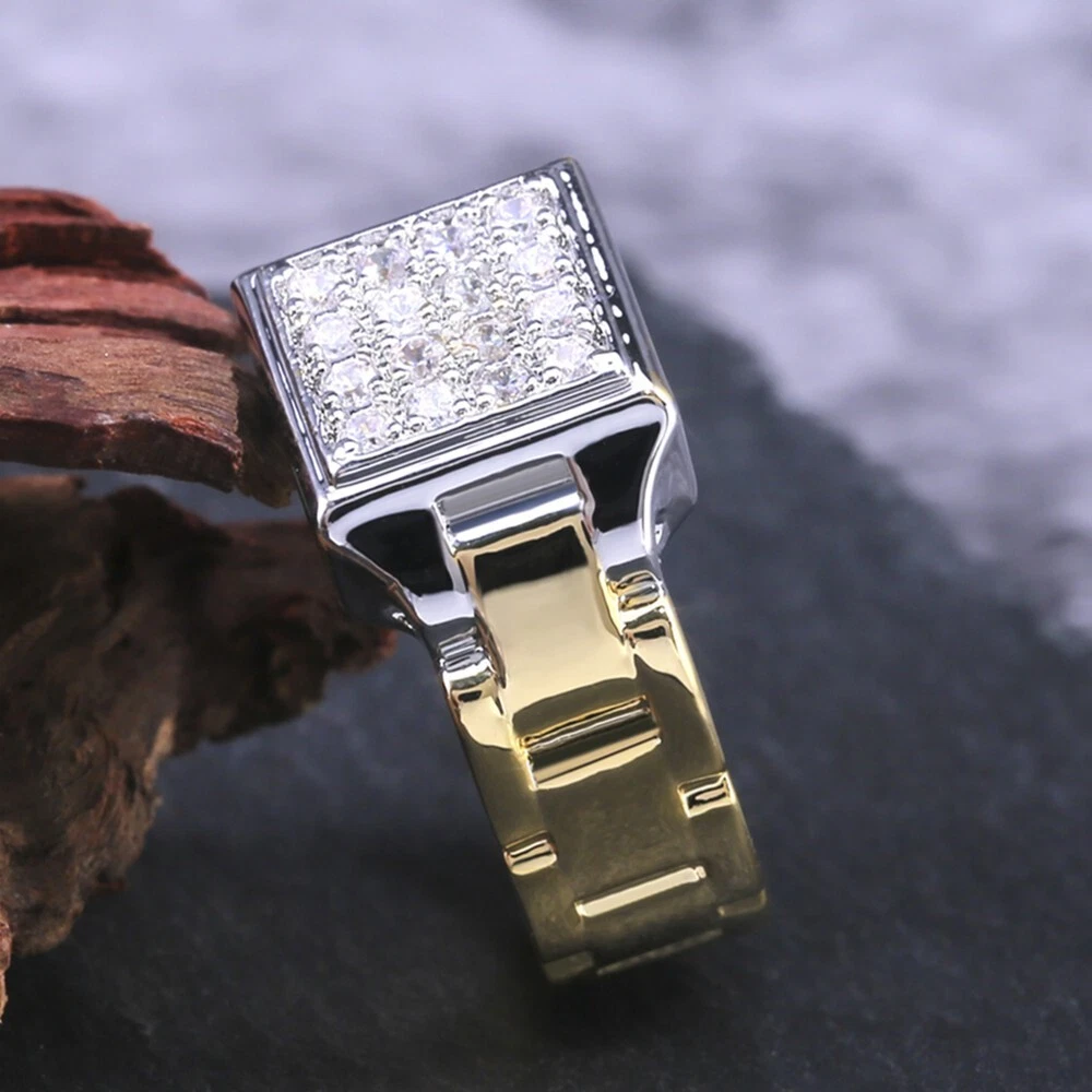 White Simulated Diamond Watch Dial Official Fashion Tops Gold Ring For Man, INDN8157 ✨ Ring Size: 8 9 10 ✨ Stone: Simulated Diamond ✨ Metal/Material: Gold plated brass ✨ Quality Material ✨ Attractive packaging ✨ other available ring size: 8 9 10 ✨ Message me for any query. ✨ Thank you..!!