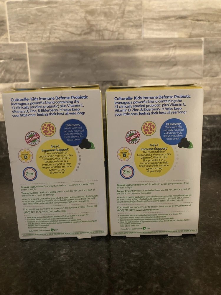2 Culturelle Kids Probiotic Immune Defense Vitamin C, D, Zinc 20 Ct Exp 04/2025. New and sealed boxes