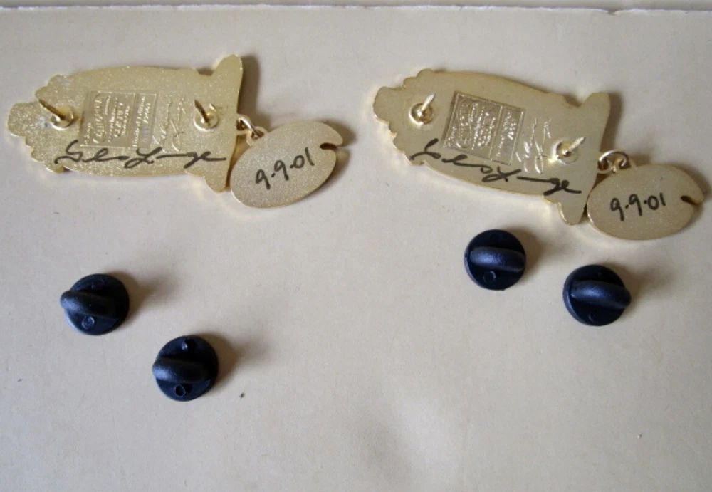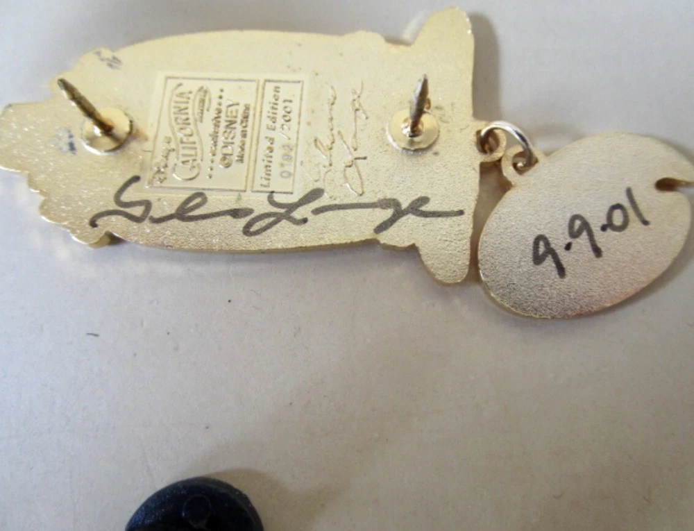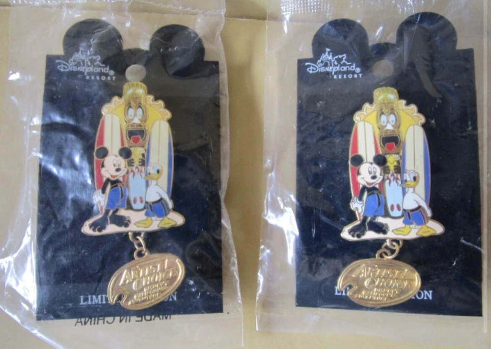 2 DISNEY DCA SEPTEMBER 2001 ARTIST CHOICE MICKEY & DONALD SURFBOARDS DANGLE LE 2001 PIN SIGNED SMOKE FREE HOME DCA Artist Choice POM for Sept. 2001 is Mickey Mouse and Donald Duck in blue swim trunks standing in front of surfboards with a Tiki in between. Behind the Tiki is the sun afire. The dangle is the Artist Choice emblum in gold. The back says Disney's California Adventure Exclusive Limited Edition ####/2001. Each pin is individually numbered.. DCA - September 2001 Artist Choice ( Mickey & Donald w/Surfboards)