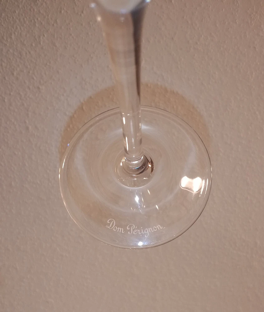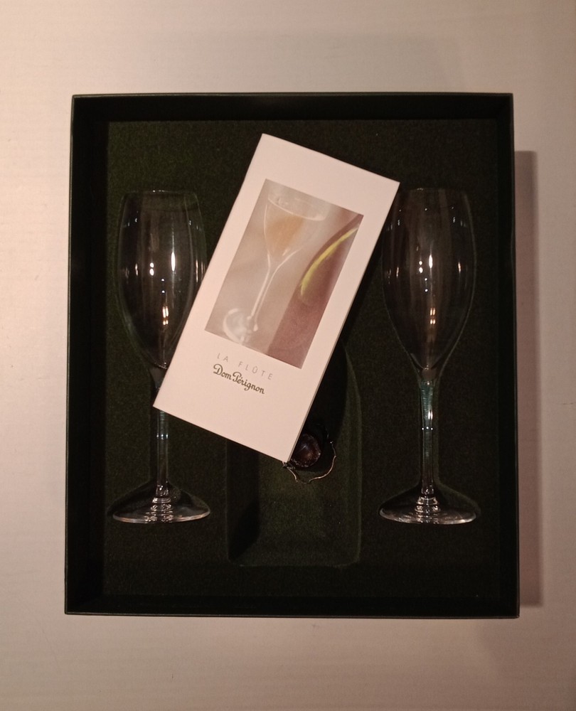Cuvee Dom Perignon Vintage 1993 Gift Box Set of 2 Crystal Champagne Flute Glasses with brochure, but without the bottle. Fine stemware with logos and a dot to indicate the fill line. This is a guide for what's recognized as the correct way to serve champagne. Zoom in. See pics. These elegant flutes are in excellent pre-owned condition, used only once. Hand washed. The box will be wrapped with the flutes inside with the "foam" insert. Pet free, smoke free household.... Please see my other quality items including designer handbags, designer shoes, designer, vintage, semi-precious jewelry, Swiss watches, apparel and home goods, etc. Thanks for looking.