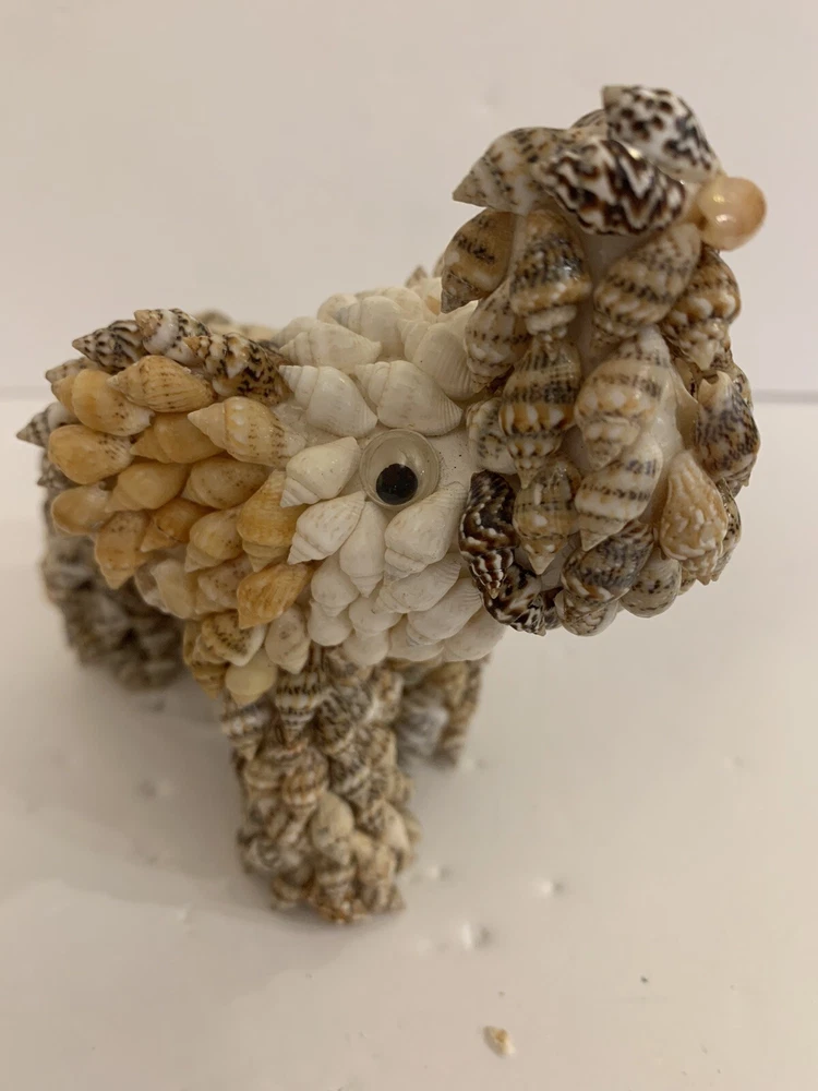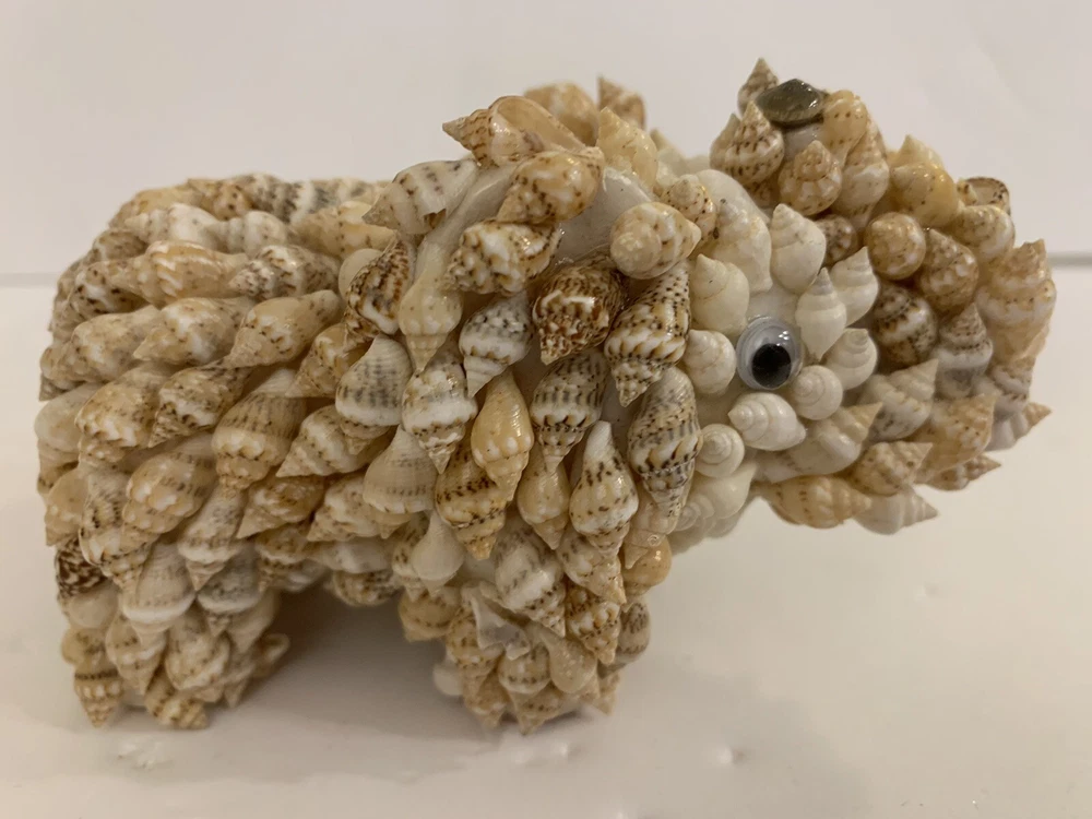 Set 2 Sea Shell Encrusted Elephants Trunks Up Figurines Handmade in Philippines Collectible Coastal decor A few missing seashells not very noticeable- refer to pics Approximately 4” and 2”H