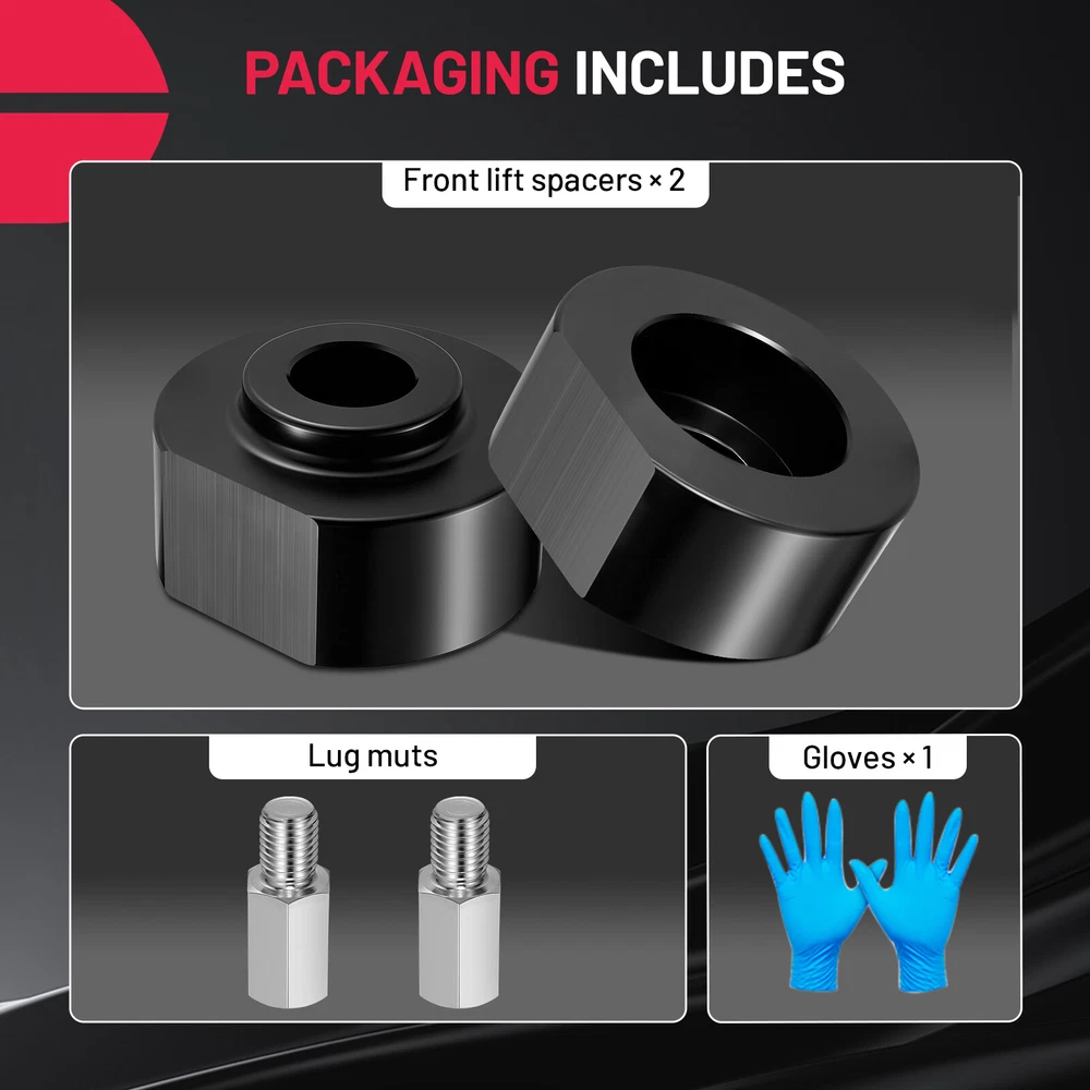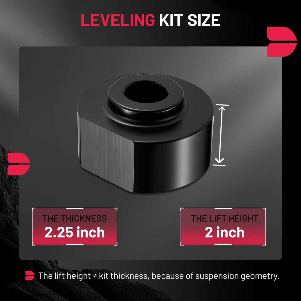 Description: Auto Part Position: Inner Material: Aluminum Included Components: Comes with housing Maximum Lifting Height: 2 Inches Package: 2 x Front Leveling Lift Kit Note:Please note that spacer thickness to lift height, not 1:1 ratio. The thickness of a 2inch gasket is 2.25inch, but the height after lifting is 2inch. 【Increase the height of your Car】: These leveling kit will raise the front of your truck by 2 inch , Because of suspension geometry,the ratio between lift height and kit thickness is not 1:1. 【Aggressive look】: Once you install it on your truck,it will give your truck a cool look.Accurate numerical control precision and high quality, ensure your driving safe and comfortable. 【Process and Material】: Forged from 6061-T6 aluminum alloy,CNC automatic processing,surface anodic oxidation and heat treatment,not only ensure high precision and stability,but also enhance the hardness and corrosion resistance of the material. 【Warranty and Services】: All Leveling kits are covered by 2 years warranty,Please feel free to contact us with any questions regarding our products and services. Description: Auto Part Position: Inner Material: Aluminum Included Components: Comes with housing Maximum Lifting Height: 2 Inches Package: 2 x Front Leveling Lift Kit Note:Please note that spacer thickness to lift height, not 1:1 ratio. The thickness of a 2inch gasket is 2.25inch, but the height after lifting is 2inch. Payment Shipping Return Note Contact us Payment 1.We offer all payment methods accepted by eBay and all payments are made through eBay. 2. You don't need to worry about giving out money or personal information. Shipping 1. Items are US stock.Continental U.S. 48 States - Free Standard Shipping. 2. We offer FREE shipping,USA average transit time is from 2 ~ 5 business days. 3. Item will be shipped out within 1 Working days upon your payment completed. 4.Tracking numbers will be sent to you once your order has been shipped. 5.Please do not hesitate to contact us if you have any questions about our products. We will be responsible for any damages or losses incurred in the shipping process. Return 1. We offer 30 days return policy. Please contact us within 30 days t from the date you receive your order if you have any issues with the product or want return .Refund will be send after we got your resend package. 2. All returned items should be in the original packaging , return tracking information should be provided . Note 1. Please confirm whether it fits your vehicle before purchasing. 2. Please review the notes in the description and Compatibility. Contact us 1.Please feel free to contact us anytime and we will give you a reply within 24 Hours. 2.If you have any questions when purchasing our products, please feel free to contact us at any time. We will definitely solve them for you seriously~ 3.If you have any questions about the product or a product you want to purchase, please provide the model and OE number to contact us, and we will find a suitable product for you~ Non-Domestic Product No Kit Parts Included Strut Spacer Color Black Manufacturer Part Number Dose not apply Kit or Single Part Kit Lift Height 2" Front Modified Item No Placement on Vehicle Left, Right, Front Brand Unbranded Type Lift Kit Included Hardware Mounting Hardware Part Type Suspension Lift Kit Material Aluminium Note 2.25 Inch Thick - NOT 1:1 Ratio Features Bolt-On Items Included Front Strut Lift Spacers Warranty 2 Year Fitment 1 Ford F-250 Super Duty Fitment 2 Ford F-350 Super Duty Fitment 3 Ford Excursion Fitment 4 Ford F-150
