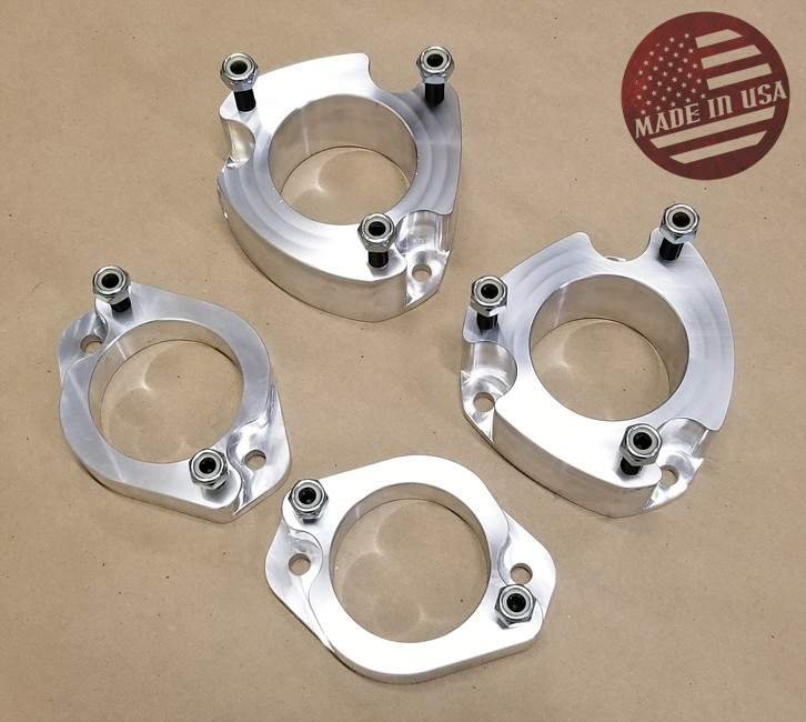 StreetRays [Originals] 2" Front & Rear Billet Leveling Spacer Lift Kit for Honda Element 03-11 CNC Machined Finished (All Around) Application: Honda Element 03-11 Lift Amount: 2" Front & Rear NOTE: Please be aware that the spacer thickness and the lift amount ratio is NOT 1:1. Instead for the rear spacers, the ratio is bigger than the ratio for the front. Which is why the front spacer thickness is nearly twice the thickness for the rear spacer. But after installation, you will get approximately 2" lift for all 4 corners. Kit Includes: 2 x CNC Machined FRONT Strut Spacers 2 x CNC Machined REAR Strut Spacers 10 x Matching nuts bolts for easy installation StreetRays [Originals] parts are 100% machined right! here in Central Texas. Matched with the best hardware which is also sourced here in USA. Quality material & precision machining is the main ingredients of all our parts. Our kit can be installed in about 3-4 hours with basic tools. Our spacers are CNC machined out of 6061 T6 billet Aluminum in Central Texas. We can assure you that our spacers are the strongest on the market and come with a 100% satisfaction guarantee & full warranty. Our kit will also include all the correct hardware and general instructions. We recommend professional installation if you don't have the correct set of tools.