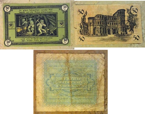 2 German Local Banknotes Voucher + 1 Italy 1943 Allied Military 2 Lire Currency