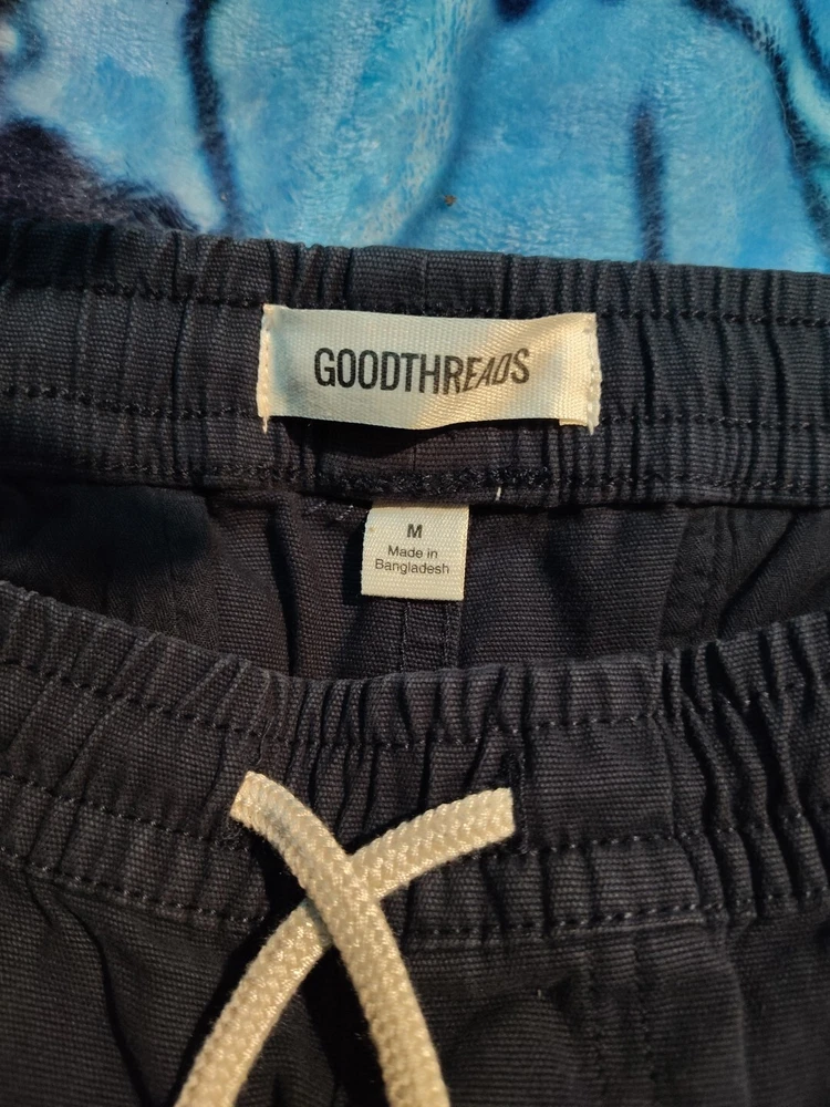 Crafted for comfort and style, these Goodthreads men's shorts are a versatile addition to any wardrobe. The navy blue color and classic canvas fabric provide a timeless look, while the elastic waist with drawstring closure ensures a secure and adjustable fit. Ideal for casual outings or travel, these shorts are designed with practicality in mind, featuring slash pockets for convenience. The blend of cotton, cotton blend, and spandex materials offers both durability and stretch, accommodating movement without compromising on shape. Available in a regular fit size M, these shorts are machine washable for easy care. They're a perfect choice for any season, seamlessly transitioning from spring to winter, ensuring you stay comfortable throughout the year.