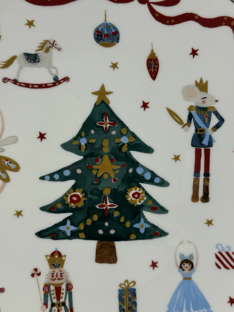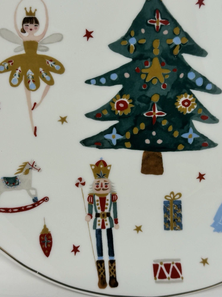 Add a touch of elegance to your Christmas dinner table with these two-piece Grace Teaware dinner plates. The round plates feature a festive Christmas celebration pattern with a glossy finish and gold trim. Made of high-quality porcelain, they are durable and dishwasher safe up to 140°F. The plates are perfect for stacking and displaying, with a diameter of 10.5". These original art pottery plates are produced using pottery techniques and are printed with the brand's backstamp. They are perfect for any Christmas occasion and make a great addition to your decorative cookware. Get your hands on these stackable and dishwasher safe dinner plates today! brand new 2024 release! very hard to find! amazing details on these! great to use for display! limited quantity! please follow our store for more