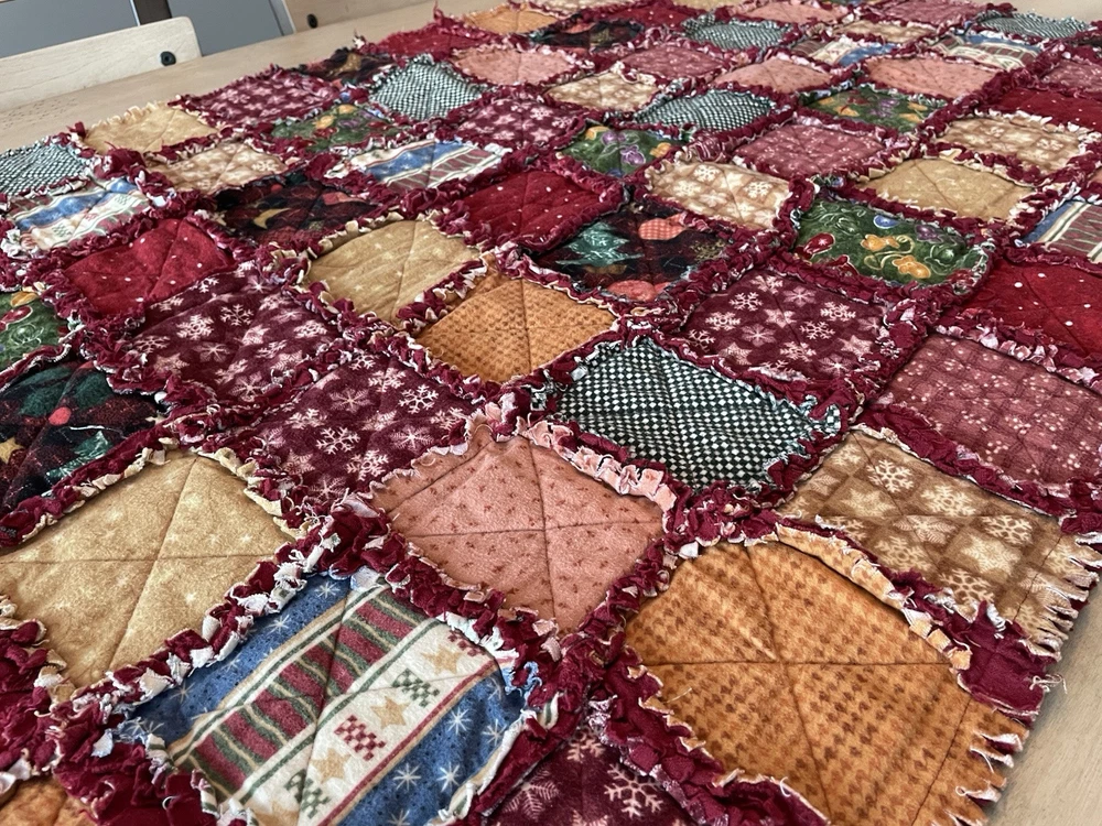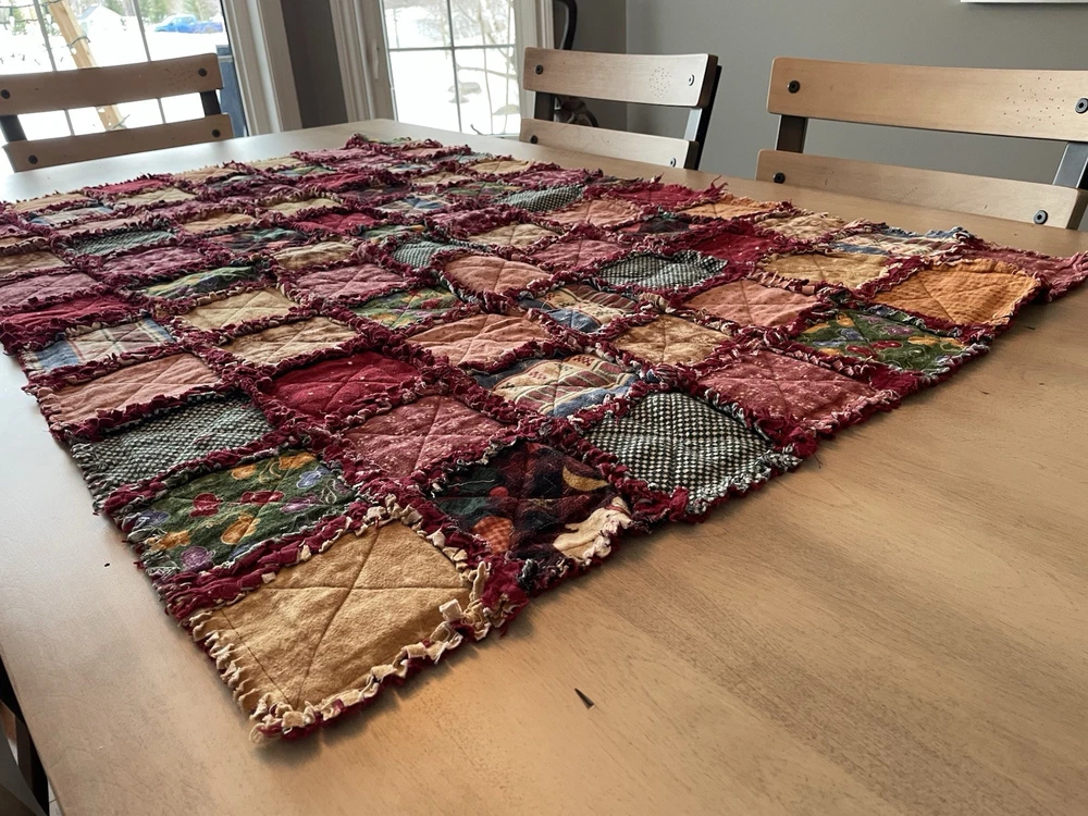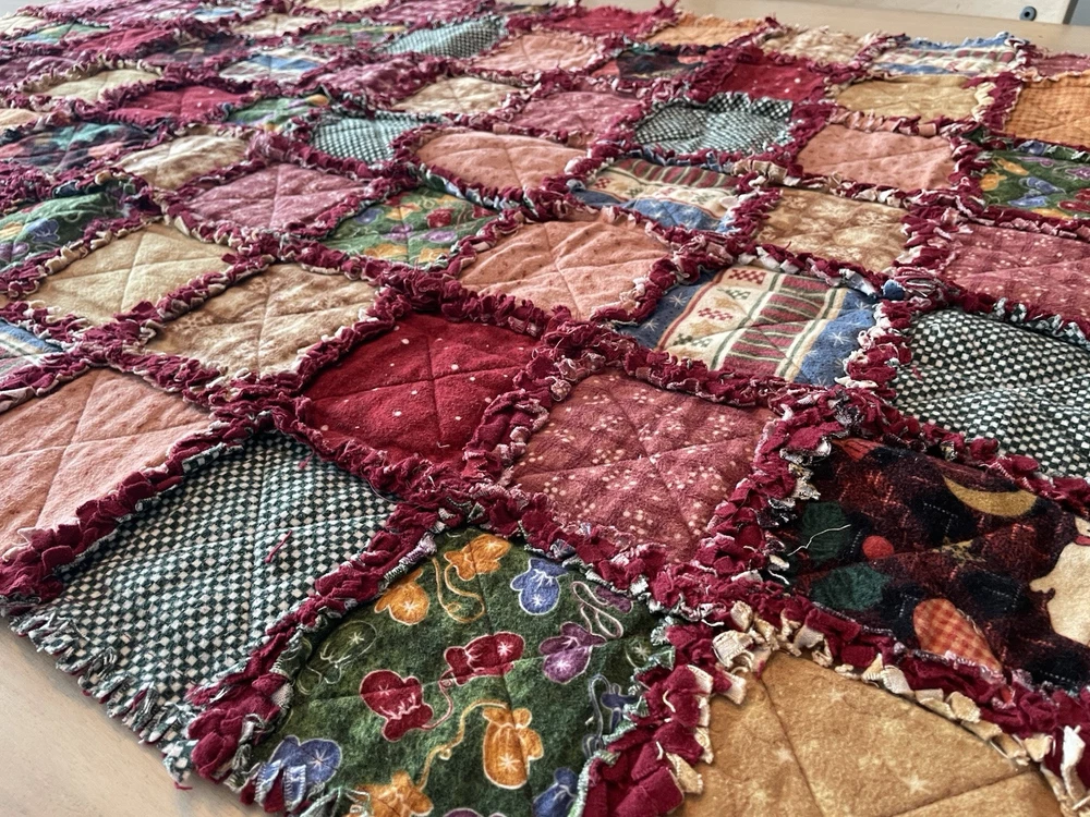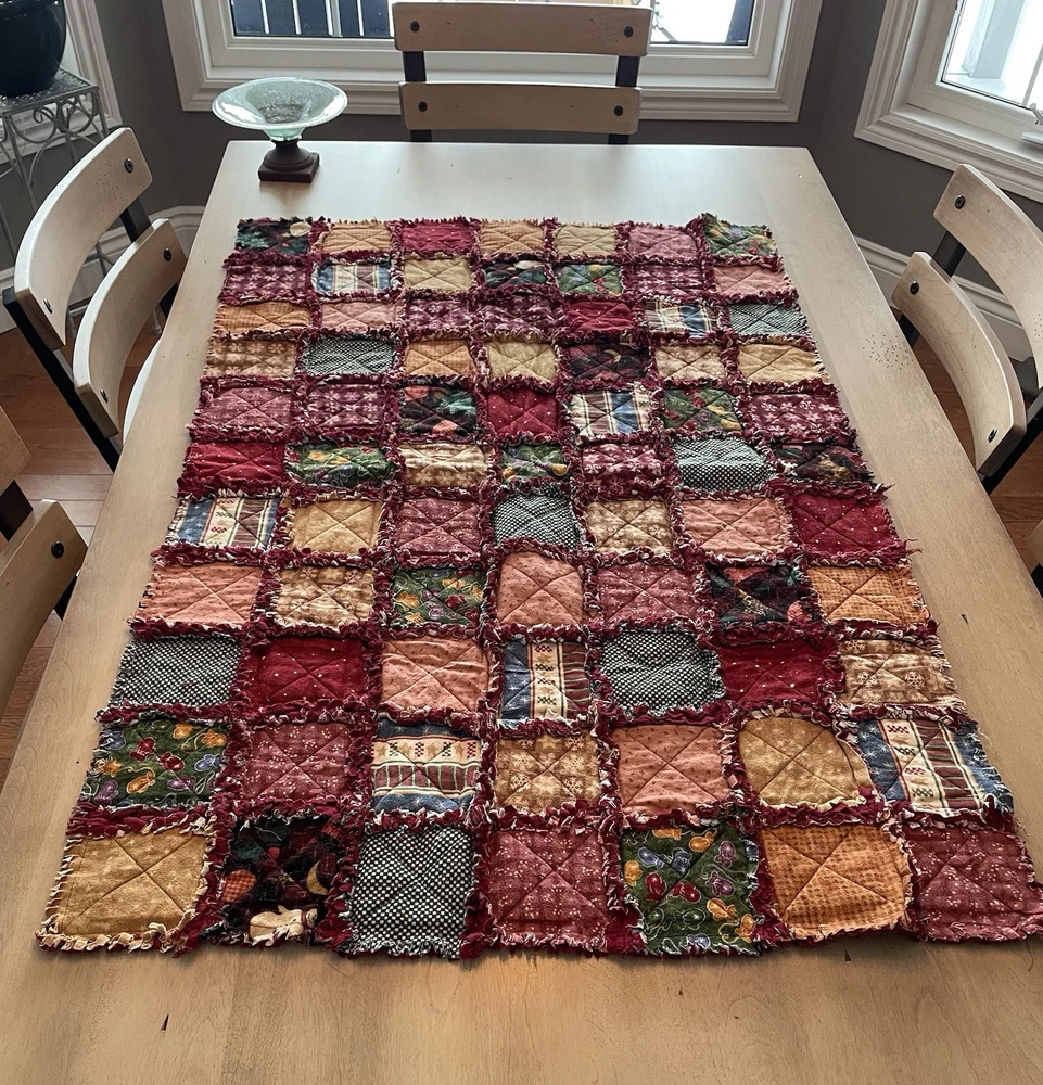 HANDMADE Quilts Rag Patch COTTON Reversible. Couch blanket, Baby bed etc excellent condition. Qty 2 sizes Beautiful colour tones. In New condition never used but freshening up maybe good. Both Baby bed, chair or couch lap blanket etc) 57” lengths 41 wide 48” length inches x 32 wide