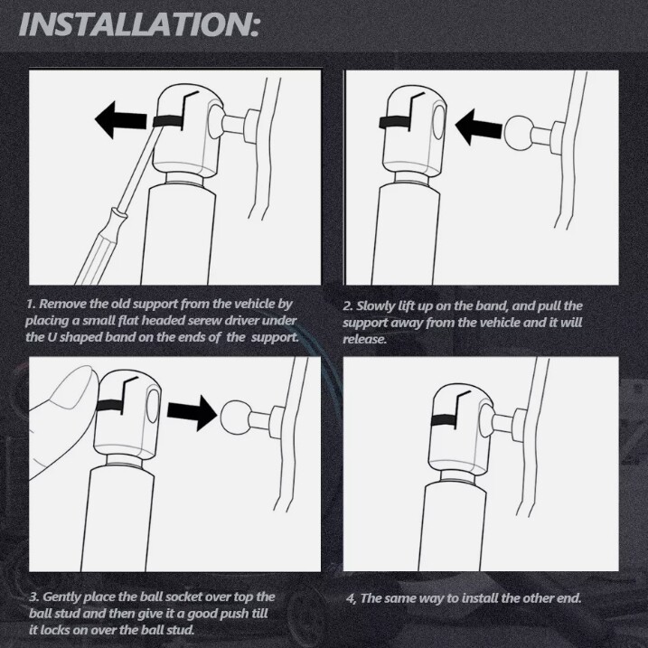 Product information Actual Extended Length : 19.40 inch Actual Compress Length :11.65 inch Easy to install with simple hand tools in just minutes Highest corrosion resistance achieved through powder coated cyclinders and special treated piston rod surfaces. Minimal friction for the production of lowest extension forces. Great life cycles. Protection against vibration and light side forces. Integrated grease chamber. Low break away forces. Installation and storage in any position. Applications: 2008-2015 Toyota Prius SHIPPING: DOMESTIC LOWER 48 US STATES: FREE VERY IMPORTANT: Double check shipping address. We are not responsible for incorrect or undeliverable addresses. Product will be shipped within 1 business days after full payment is received and verified. Delivery Time is about 3-7 business days to most of countries. We ship the package to your shipping address in eBay instead of the one in PayPal. Please tell us your shipping address if it is different from the one in eBay. The tracking number will be given for the customer to check the shipping status online (registered or faster service only). We are not responsible for any wrong or undeliverable addresses. Please verify and update your shipping address on eBay during checkout. PAYMENT : Item will be shipped out within 24 hours after payment cleared, except for weekends and holidays. RETURN: 30 Days Free Returns, please notify us within 30 days after you've received your order. Please email us or call us to obtain a RMA (Return Merchandise Authorization) number from us, and have the RMA number written on the return package. Items to be returned must be in resalable condition. All returns are for refund ONLY. No exchange accepted. TERM & CONDITION: For emissions related items, please check with your local jurisdiction for emission specific requirements before purchasing. All items do not come with installation instruction unless otherwise specified. If item is questionable, please consult your local professional/mechanic before making purchase. Please leave us POSITIVE FEEDBACK and 5 stars DSR if you are happy with the transaction.