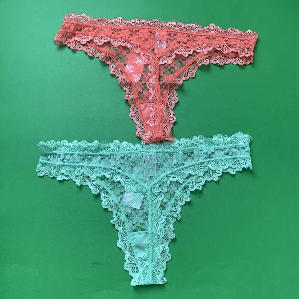 2 Hers By Herman Lace Thongs Floral Size XL Scalloped Edges New
