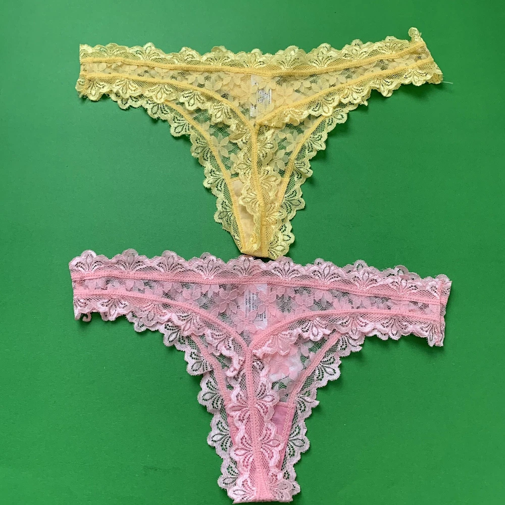 2 Hers By Herman Lace Thongs Yellow/Pink Floral Size Large Scalloped Edges New.