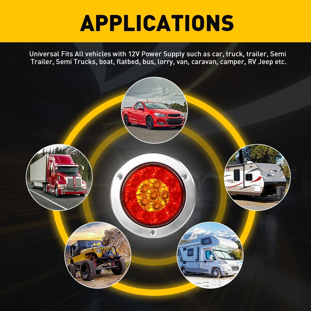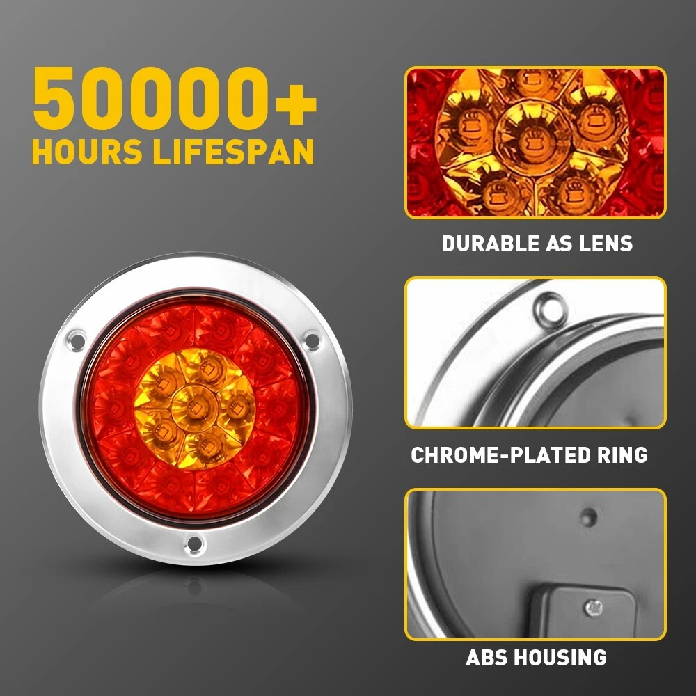 2 PCS Red/Amber Round tail 16LED Stop Brake Turn Signal Lights Truck Trailer Specification: Material: ABS & Rubber Voltage:12V-24V Waterproof grade:IP67 Service life: 50000H+ Light color: Red(10 leds),amber(6 leds) LED quantity: 16 LEDs per unit Universal for: Trucks, trailers, tractors, semi-trailer, Dump Truck, bus, boat, special vehicle, and etc. Features: 2 Inch PCS 4 Chrome Round 16LED Red Amber Turn LED Stop Brake Trailer Tail Light 2 PCS Red/Amber Round tail 16LED Stop Brake Turn Signal Lights Truck Trailer Specification: Material: ABS & Rubber Voltage:12V-24V Waterproof grade:IP67 Service life: 50000H+ Light color: Red(10 leds),amber(6 leds) LED quantity: 16 LEDs per unit Universal for: Trucks, trailers, tractors, semi-trailer, Dump Truck, bus, boat, special vehicle, and etc. Features: High brightness: Adopts 16 pieces of advanced LED lamp beads glowing brightly but not dazzlingly. 100% Brighter than halogen bulbs but more Energy-saving. Waterproof: The tail light is highly silicon sealed with an IP67 waterproof rating, which works even under extreme conditions such as rain and snow. Easy to install: Easy installation with direct replacement, other modifications are not required. Connection Black wire connects to negative. Red wire:Braking light (Red light with high brightness) Blue wire:Driving light(Red light with low brightness) Yellow wire: Turn signal light(Amber light) Functions Tail Light, Running Light, Stop Light, Turn Signal Light, etc. Wide application: Universal Fits All vehicles with 12V Power Supply such as car, truck, trailer, Semi Trailer, Semi Trucks, boat, flatbed, bus, lorry, van, caravan, camper, RV Jeep etc. Note: Please check the detail information carefully before purchasing. Your satisfaction is our utmost concern, please feel free to contact us for any questions and concerns. Store Service???/span> All our product share 2-years warrantys. If incorrect or defective item when you receive it, please feel free to contact us via eBay message. We will pay return shipping fee and arrange replacement ASAP. We are a professional shop. We devote ourselves to offering best product and good service.Any problem, complaint or suggestion happened during transaction, please contact us before leaving any feedback. We are committed to resolve all issues in a friendly and satisfactory manner. If you have any questions, please contact us, we will solve the problem for you within two working days Thank you! Item Specifics Brand AUXITO Performance Part Yes Brand Unbranded Number of Bulbs 2 Placement on Vehicle Rear Lens Color Smoke/Tinted Features DOT-Certified, SAE-Certified Housing Color Black Type Tail Light Assembly Manufacturer Part Number XPD-WDZ-49444 Packaging include 2X Tail Lights Voltage 12 V Fitment Universal Universal Fitment No Manufacturer Warranty 2 Years Finish Textured Payment We can accept payment by credit, debit, and gift cards; Apple Pay, Google Pay, PayPal, and PayPal Credit. Shipping 1. All items will be shipped in 24 hours after receiving your payment . 2. We ship this item to US only via USPS first class mail. It usually takes 3-5 working days to deliver. Returns 1. We offer 60 days return policy. 2. Please contact us within 60 days from the date you receive your package if you have any questions with the products . 3. Refund will be sent after we got your returned package. 4. All returned items should be in the original packaging with tracking number. Contact Us We work from Monday - Saturday 9:00AM - 6:00PM PST, but we will reply you once we get your message .There will be some delay on response if you send message or E-Mail on Sunday. DESCRIPTION PAYMENT SHIPPING RETURN POLICY CONTACT US Hot item Help & Info Payment Policy Shipping Policy Return Policy FAQ About Us 2 Inch PCS 4 Chrome Round 16LED Red Amber Turn LED Stop Brake Trailer Tail Light 2 PCS Red/Amber Round tail 16LED Stop Brake Turn Signal Lights Truck Trailer Specification: Material: ABS & Rubber Voltage:12V-24V Waterproof grade:IP67 Service life: 50000H+ Light color: Red(10 leds),amber(6 leds) LED quantity: 16 LEDs per unit Universal for: Trucks, trailers, tractors, semi-trailer, Dump Truck, bus, boat, special vehicle, and etc. Features: High brightness: Adopts 16 pieces of advanced LED lamp beads glowing brightly but not dazzlingly. 100% Brighter than halogen bulbs but more Energy-saving. Waterproof: The tail light is highly silicon sealed with an IP67 waterproof rating, which works even under extreme conditions such as rain and snow. Easy to install: Easy installation with direct replacement, other modifications are not required. Connection Black wire connects to negative. Red wire:Braking light (Red light with high brightness) Blue wire:Driving light(Red light with low brightness) Yellow wire: Turn signal light(Amber light) Functions Tail Light, Running Light, Stop Light, Turn Signal Light, etc. Wide application: Universal Fits All vehicles with 12V Power Supply such as car, truck, trailer, Semi Trailer, Semi Trucks, boat, flatbed, bus, lorry, van, caravan, camper, RV Jeep etc. Note: Please check the detail information carefully before purchasing. Your satisfaction is our utmost concern, please feel free to contact us for any questions and concerns. Store Service???/span> All our product share 2-years warrantys. If incorrect or defective item when you receive it, please feel free to contact us via eBay message. We will pay return shipping fee and arrange replacement ASAP. We are a professional shop. We devote ourselves to offering best product and good service.Any problem, complaint or suggestion happened during transaction, please contact us before leaving any feedback. We are committed to resolve all issues in a friendly and satisfactory manner. If you have any questions, please contact us, we will solve the problem for you within two working days Thank you! Payment Shipping Returns Contact Us We can accept payment by credit, debit, and gift cards; Apple Pay, Google Pay, PayPal, an