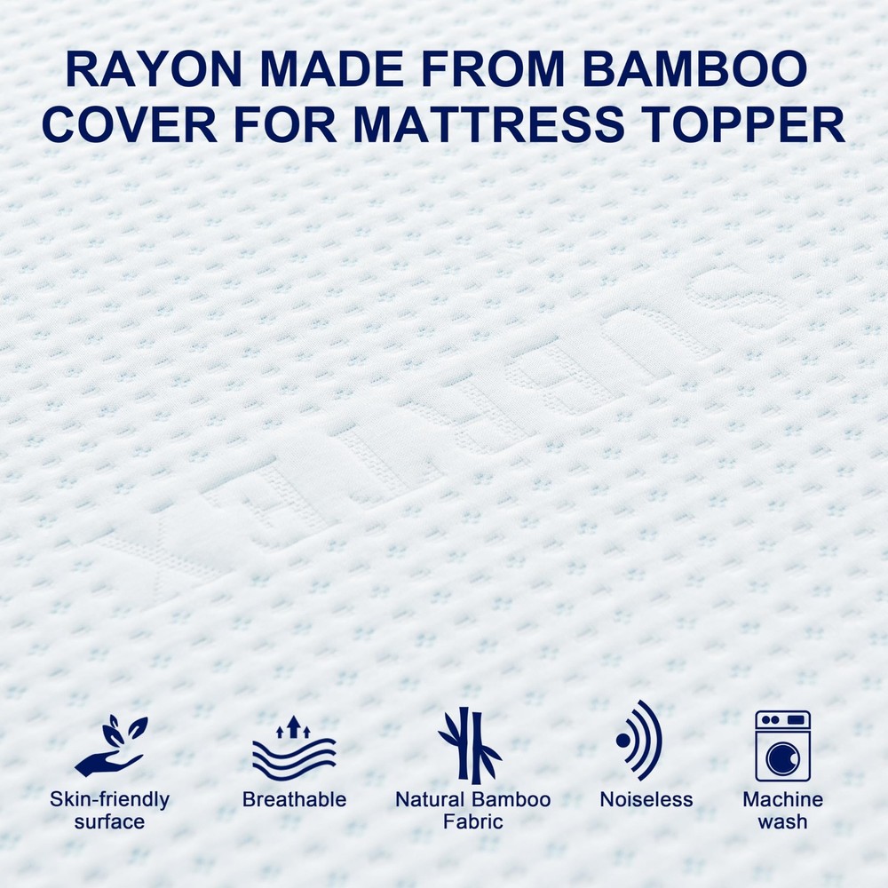 Mattress Topper Protector Rayon Made from Bamboo Bedding Topper Cover Mattress Topper Protector (Only Cover): Adopting from Premium Cooling Rayon Made from Bamboo. Its zip closure ensures your mattress topper with full coverage. Also, it could refresh your old mattress topper to brand new with less expense Various Size Mattress Topper Cover: To meet the difference needs,we provide 6 sizes for different shape mattress topper: Twin (39” X 75”), Twin XL (38” X 80”), Full (54” X 75”), Queen(60” X 80”), King(76” X 80”), CK ( 72” X 84”), you could choose the most suit size for yourself Best partner for sleep: Our product committed to improving sleep quality, offering a comfortable noiseless sleeping experience to all ages Fitted Mattress Cover: Removable topper cover perfectly fits your mattress. The encasement is equipped with mesh fabric backing and adjustable straps, keep the topper stay in place effectively throughout the night Warranty: If you are not satisfied with our products, please contact our customer service department and we will do our best to make it right. We are confident in our products' quality
