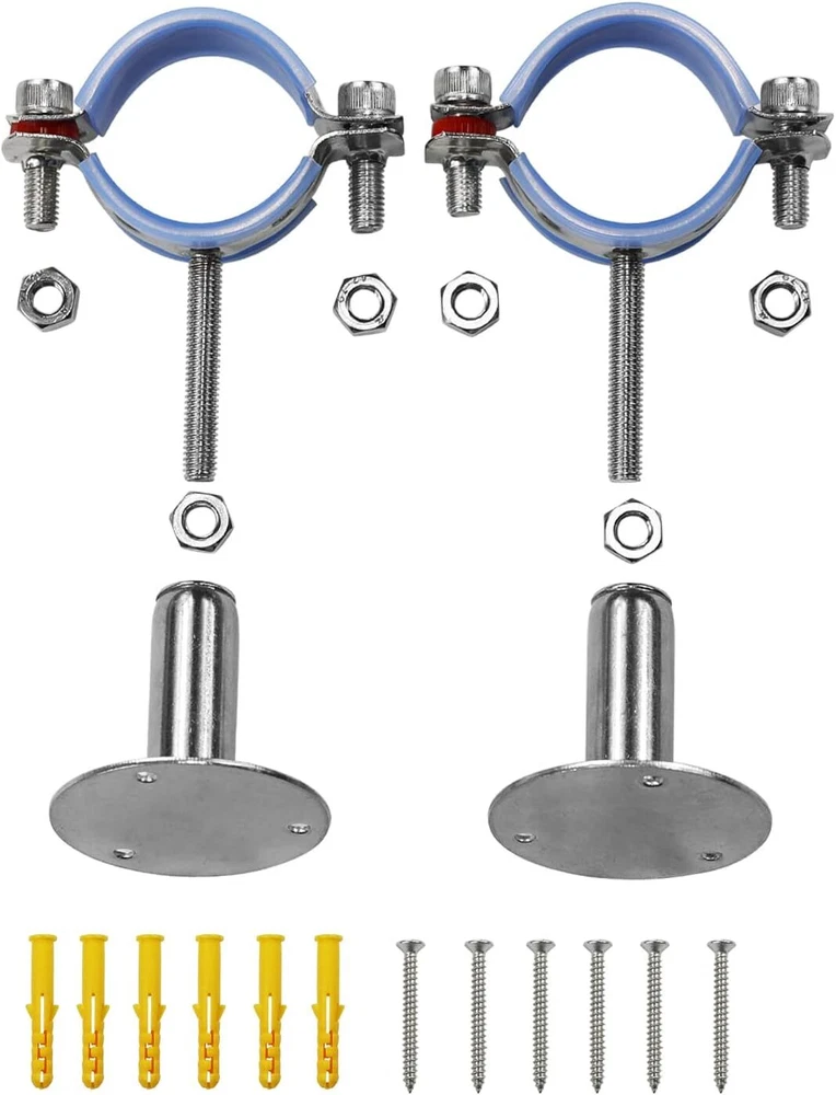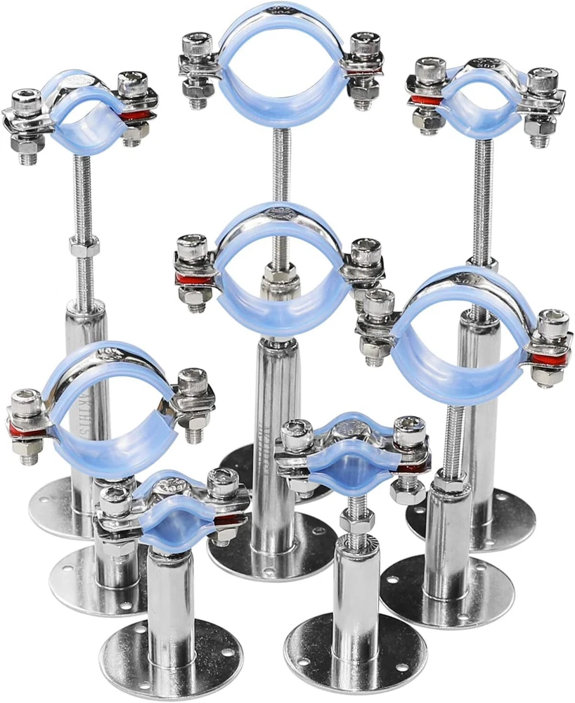 2 Inch Wall Mount Ceiling Mount Pipe Support,2 Pcs Adjustable Stainless Steel... [Clamp Size] Wall pipe support fit for 1.89-2"(48-51mm) pipe OD, thickness: 0.047”/1.2mm, width: 0.098”/ 2.5mm, bracket length: 50mm, screw length: 50mm, installation length can be adjustable as per your need. [Protect Your Pipe] Split ring pipe hanger with silicone Cushion, you don't have to worry about scratches caused by friction between clamp and pipe when you use it, and will pipe fixing more strong. [High Quality Material] Pipe support bracket made of full 304 stainless steel, high temperature resistance and rust resistance,durable, and can be used in high temperature or humid environment. [Wide Applications] Pipe Bracket Clamp is mainly used for pipe support, pipe fixing, pole support, sinking office chair fix, and can be installed on the wall or ceiling.