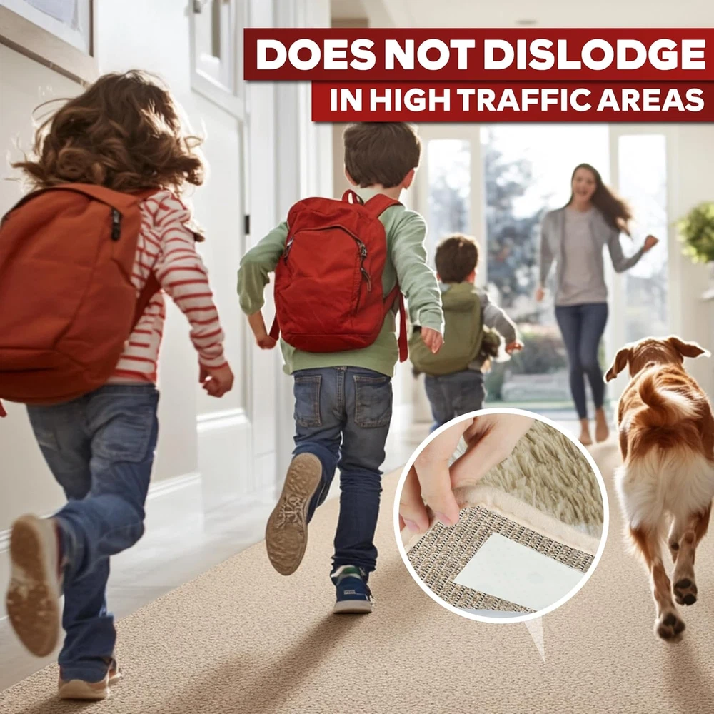 Secure area rugs and carpets in place with our double sided carpet tape heavy duty. Our double sided tape for rugs to stay in place is great to keep rug in place on carpet, hardwood floors, and carpet-to-carpet applications. Unlike other double sided rug tape for carpet floor, our area rug tape for tile uses a RESIDUE-FREE adhesive that DOESN’T DAMAGE HARDWOOD FLOORS and is REMOVABLE even after years. Our carpet tape for hardwood floors is vacuum-friendly and repositionable while maintaining MAX ADHESIVE STRENGTH; it's the best rug tape double sided for runners, gym mats, and stair treads. Avoid curling edges or sliding rugs, even in high-traffic areas. When used on rug corners to hold rugs down, 30 yards secures up to 20 carpets for up to 5 years of WOOD-SAFE adhesion. Our rug tape grippers for area rugs on hardwood floors are UV-resistant, waterproof, and weatherproof (-4°F to 176°F), making this carpet tape for carpet to carpet great for outdoor rugs and patios. Product Description About The XFasten Double Sided Carpet Tape Why Choose The XFasten Carpet Tape? Easy to Apply The XFasten double sided Carpet Tape is super easy to use and doesn't require any professional tools. Just stick-tear-adhere! Easy to Remove By Hand This carpet binding tape uses silicone adhesive to ensure that it's easy to remove and won't leave any residues. Keeps Your Family Safe Switch to the XFasten rug tape for a no-hassle carpet placement that could last up to six months! Strong Adhesive Secure your carpets, area rugs, and mats using this gripper for carpet to keep your family from dangerous accidents at home. 1 Tip 1 2 Tip 2 3 Tip 3 No More Slipping, No More Sliding XFasten Carpet Tape The XFasten Double Sided Carpet Tape is tried and tested to withstand time and any amount of foot traffic. This rug gripper tape has strong adhesion but will not ruin delicate surfaces and even expensive carpet and rug materials. It's designed and manufactured to provide safety at everyone's home. With the XFasten rug gripper for carpet over carpet, you don't have to worry about accidents happening to your kids, parents, fur babies, and elderly loved ones. The video showcases the product in use. The video guides you through product setup. The video compares multiple products. The video shows the product being unpacked. The XFasten Carpet Tape Collection Add to Cart Add to Cart Add to Cart Customer Reviews 4.3 out of 5 stars 23,758 4.3 out of 5 stars 23,758 4.3 out of 5 stars 23,758 4.2 out of 5 stars 6,621 4.3 out of 5 stars 23,758 4.3 out of 5 stars 23,758 4.3 out of 5 stars 23,758 Price $11.84 $ 11 . 84 $11.99 $ 11 . 99 $55.99 $ 55 . 99 $6.29 $ 6 . 29 $8.46 $ 8 . 46 $11.83 $ 11 . 83 $22.99 $ 22 . 99 Width 2" 2" 2" 2" 2" 3" 4" Length 30 Yards 30 Yards 30 Yards 5 Yards 10 Yards 20 Yards 30 Yards Adhesive Color White White White White White White White Material Type Silicone-Adhesive Blend Silicone-Adhesive Blend Silicone-Adhesive Blend Silicone-Adhesive Blend Silicone-Adhesive Blend Silicone-Adhesive Blend Silicone-Adhesive Blend Quantity Single Roll Single Roll 6 Rolls Single Roll Single Roll Single Roll Single Roll Inclusions None 1 Unit Box Cutter None None None None None Double Sided ✔ ✔ ✔ ✔ ✔ ✔ ✔