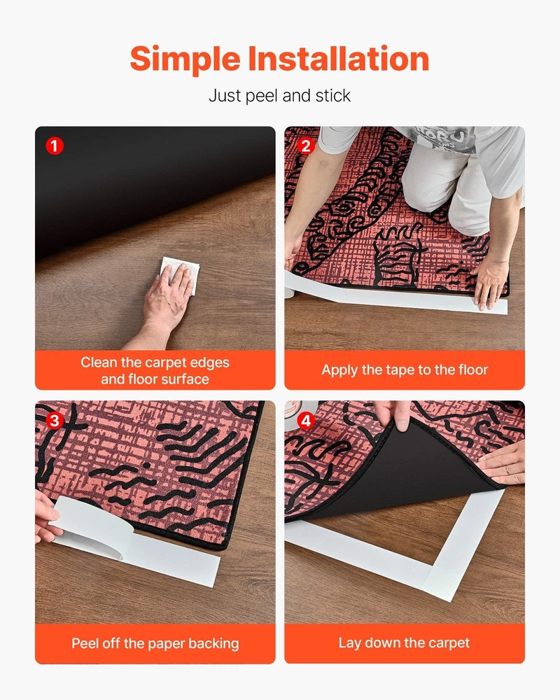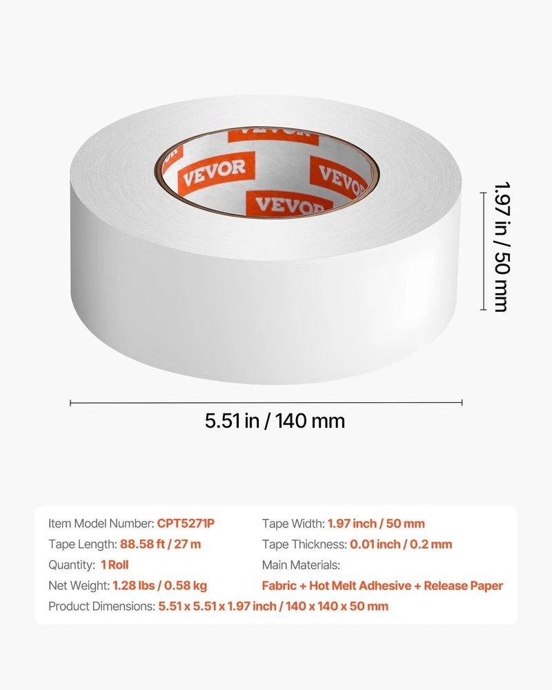 Highlights Tear Easily by Hand: This double sided carpet tape features a durable fabric backing that withstands curling or breaking, making application quick and effortless Strong Adhesion Power: Featuring a hot-melt adhesive, this double sided rug tape bonds instantly to the floor, keeping rugs firmly in place-even with pets running and playing on it, there's minimal shifting or edge lifting Ultra-Thin Design: Only 0.01 inch thick, this double sided tape for rugs sits nearly flush with the rug backing, staying hidden underneath without creating bumps or affecting the feel. It ensures both a clean look and comfortable footing No Sticky Leftovers: This carpet tape for area rugs peels off cleanly without glue traces or sticky film, making cleanup quick and keeping your floors clean and undamaged Wide Compatibility: This rug tape for carpet works on hardwood, tile, marble, and concrete surfaces. Ideal for homes, offices, and exhibitions, it keeps rugs securely in place while enhancing security and appearance Specification UPC: 197988886044 Shipping Limitations: Unlimited Dimensions: 6.70 in. * 6.30 in. * 2.37 in. Weight: 1.44 lbs Available Ship to: United States Double-Sided Carpet Tape Designed with a strong fabric backing, this double sided rug tape is easy to tear and delivers firm adhesion to hold rugs steady without shifting. Ideal for residential spaces, work environments, or events, it supports secure walking and more confident rug installation. One roll of this rug tape stretches a generous 88.58 ft—long enough to handle large carpet installations with fewer seams and smoother application. This double sided tape for rugs sticks firmly, holding rugs in place without shifting or bunching. It helps reduce tripping risks and keeps corners flat, making your space secure and tidy. Designed to grip various flooring materials, this carpet tape for area rugs performs well on hardwood, laminate, tile, marble, and more. It ensures rugs stay exactly where you place them. Ideal for staircases, living rooms, bedrooms, and bathrooms, this rug tape for carpet helps anchor rugs in place, enhancing both comfort and functionality in your home or office.